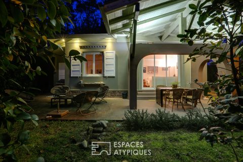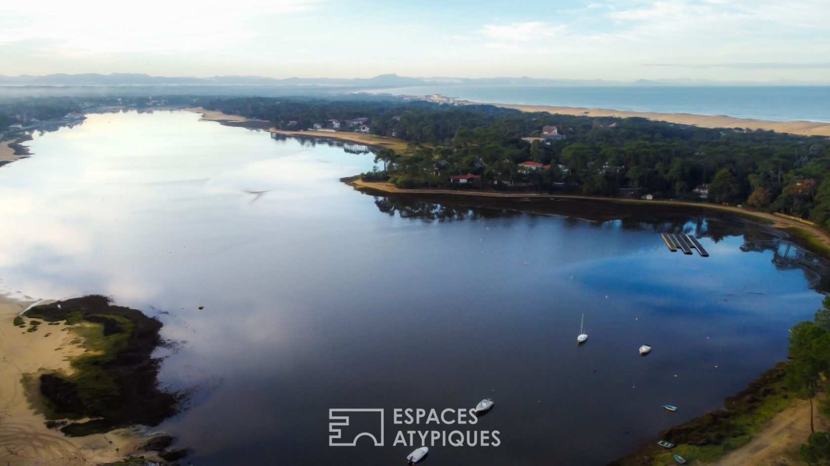 Located in the lake district, this typical house from the 60s offers a peaceful living environment in a green environment. Its small, well-arranged surface area makes it a perfect holiday home. The living room has a high ceiling with exposed framework. Bright, it opens onto a South-West facing terrace suggesting an inside/outside lifestyle. The independent kitchen is fully equipped and has a view of the rear of the garden and its raised terrace. In this same space, two bedrooms with solid parquet floors share a bathroom with walk-in shower and separate WC. An independent guest bedroom has its own access and offers a chalet-style decorated space where wood is in the spotlight. A bathroom with WC gives total autonomy on this volume. The exterior environment offers a garden planted with local species: arbutus trees, cork oaks, pines. The double terraces, with daily sunshine, offer distinctive outdoor living spaces. On the living room side, a covered terrace allows you to enjoy a protected dining area and an uncovered relaxation room overlooking the pine forest. On the guest bedroom side, a terrace tends to be redesigned as a swimming pool. This house, at the bottom of a cul-de-sac, offers numerous possibilities for development: elevation, arrangement of the existing to gain living space, creation of a swimming pool…In the lake district, it allows you to live a stone’s throw from the shops, at the edge of the forest and a few minutes’ walk from the marine lake. HOUSING WITH EXCESSIVE ENERGY CONSUMPTION: CLASS G/ CLIMATE CLASS: C Estimated average amount of annual energy expenditure for standard use, established from energy prices for the year 2021: between 1140 euros and 1610 euros. Contact: Nathalie LAURENT