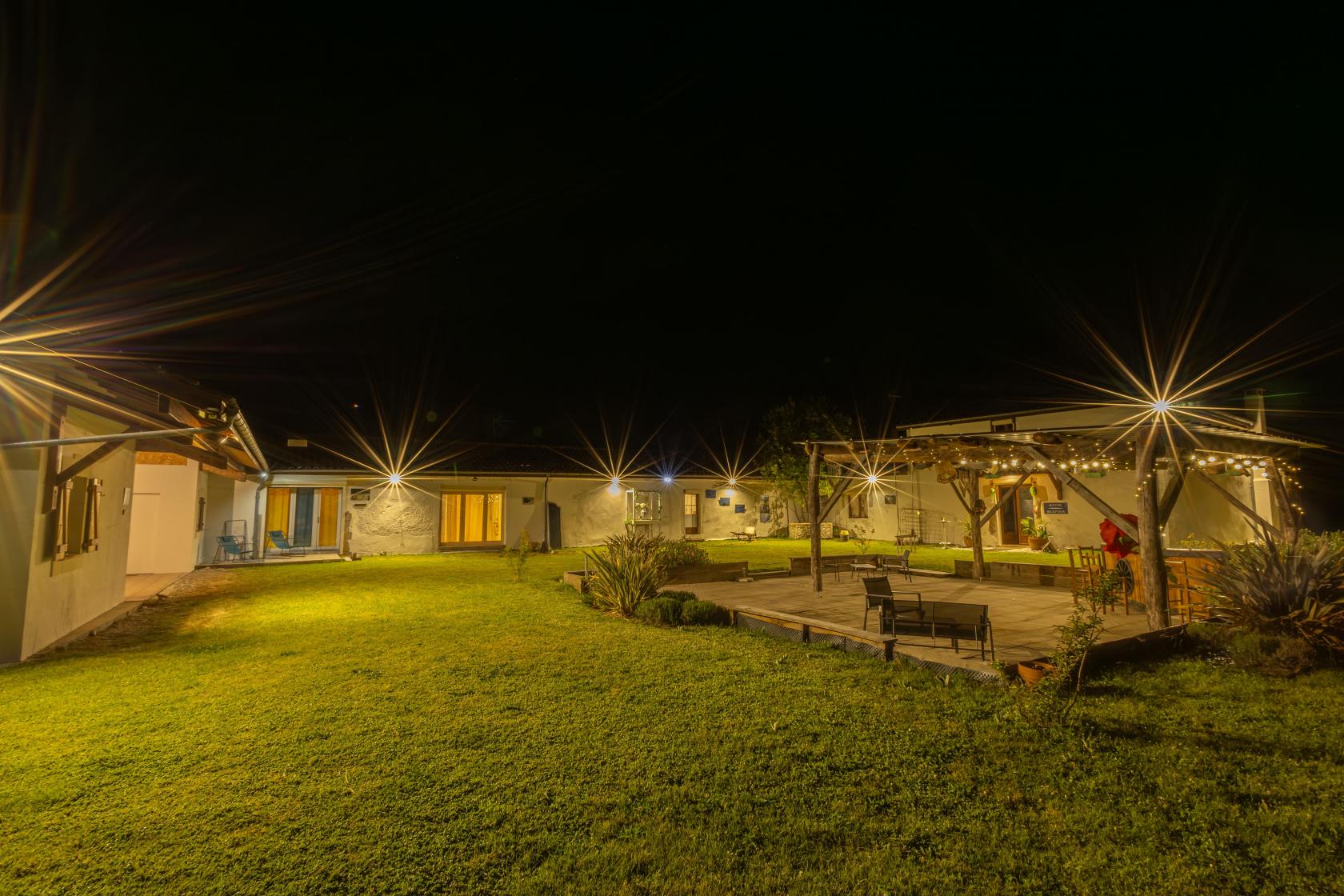 The private sleeping quarters are spread across the main house, comprising two bedrooms with en-suite bathrooms and a laundry room. The guest accommodation is located upstairs, offering two generously sized bedrooms with exposed beams. They share a bathroom and enjoy a commanding view of the site’s beauty. A relaxation area with a jacuzzi and restrooms completes the experience of this first living space.