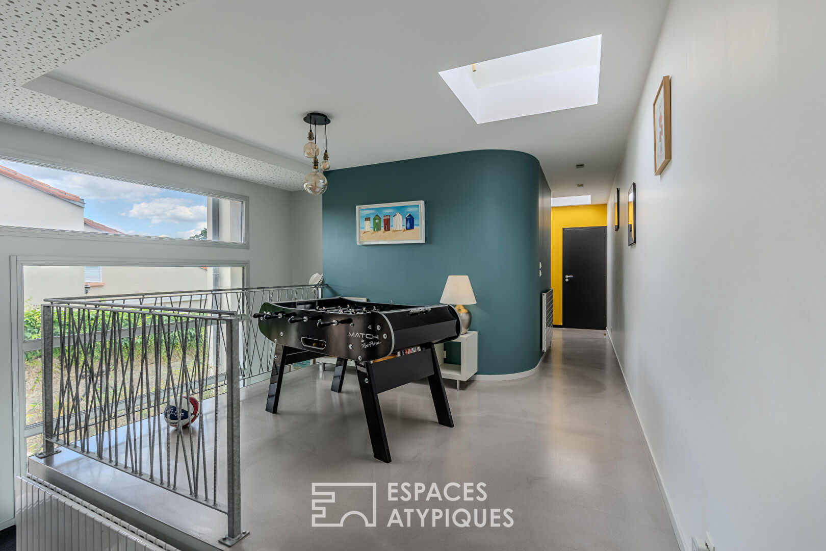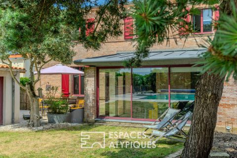 Exclusive to Espaces Atypiques. Located in a peaceful and privileged area of Saint-Herblain, in the immediate vicinity of Nantes, this spacious family home with a floor area of 276 sqm (188.96 sqm Carrez law) will surprise you with its charm and unique character. This house harmoniously combines the charm of the old and the elegance of the contemporary thanks to its two modern extensions. A true haven of peace, just a few minutes from the city, it has a large swimming pool and a beautiful garden sheltered from view on a plot of 920 sqm. As soon as you arrive, let yourself be carried away by a unique atmosphere where refined contemporary architecture and the authenticity of the old with its raw materials meet. The main living space is located in the old farmhouse, with stone walls, exposed beams and a metal staircase. The living room of over 52 sqm, bathed in light, benefits from a beautiful high ceiling and a fireplace with insert, all heated by a heated floor. It opens onto a custom-made, fully equipped kitchen, which opens directly onto the terrace and the garden thanks to large bay windows, thus creating a harmonious transition between the interior and the exterior. A storeroom, a cupboard and a separate toilet complete this space. In the contemporary extension with a flat roof, a few steps lead to an open space, a bedroom (or large office), as well as a master suite with shower room and separate toilet. In the semi-basement, you will find a large linen room and a garage. The upper floor of the old part is served by an industrial-style staircase. It houses three bedrooms, including a second master suite with shower room, as well as a bathroom and separate toilet. Outside, the Mediterranean garden, decorated with an olive tree, palm trees and a pine tree, is accompanied by a cozy terrace, a large heated swimming pool and a converted outbuilding with a summer kitchen area and storage space. The property also has a well, a 43 sqm garage and a large courtyard at the front, ideal for parking. Ideally located, 10 minutes from the airport and 20 minutes from Nantes city center, 5 minutes from Atlantis, with easy access to public transport as well as cultural and sporting activities. A unique place in Saint-Herblain to discover without delay. Contact: Galliane GILBERT -EI- 06 14 46 28 16 galliane.gilbert@espaces-atypiques.com Sales agent RSAC 2023AC00086 Nantes ENERGY CLASS: D / CLIMATE CLASS: D Estimated average amount of annual energy expenditure for standard use, established from energy prices for the year 2021 (subscription included): between EUR2,090 and EUR2,890. Information on the risks to which this property is exposed is available on the Géorisques website: www.georisques.gouv.fr