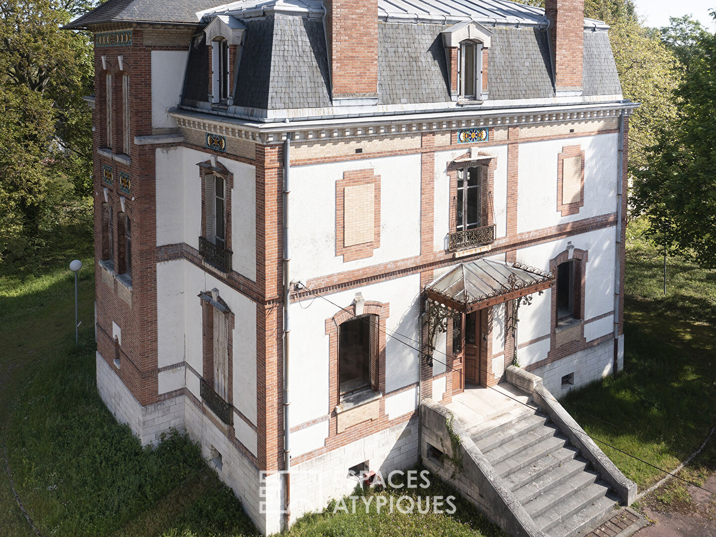 It is at the bottom of a dead end, in the heart of Montargis and a few minutes walk from the town center that this remarkable building from 1902 of approximately 500m² of living space is hidden in the center of a wooded park of more than 3600m².