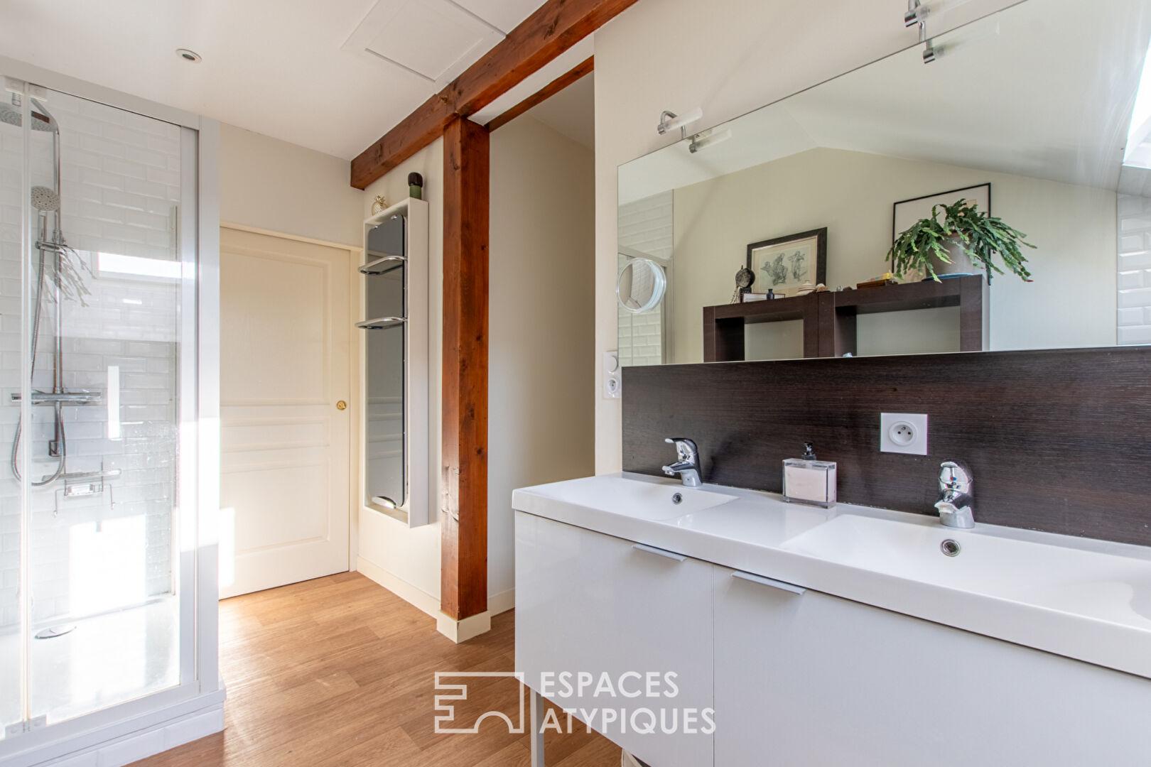 In the heart of Angers’ city center, on the fourth and top floor of a charming building (with an elevator to the third floor), this superb 94 sq m (Carrez Law) apartment (107.6 sq m of floor space) combines period charm with contemporary amenities.