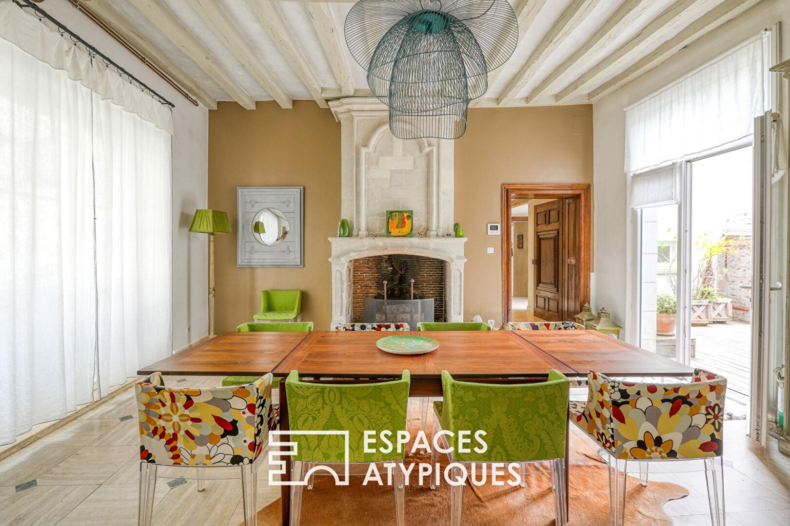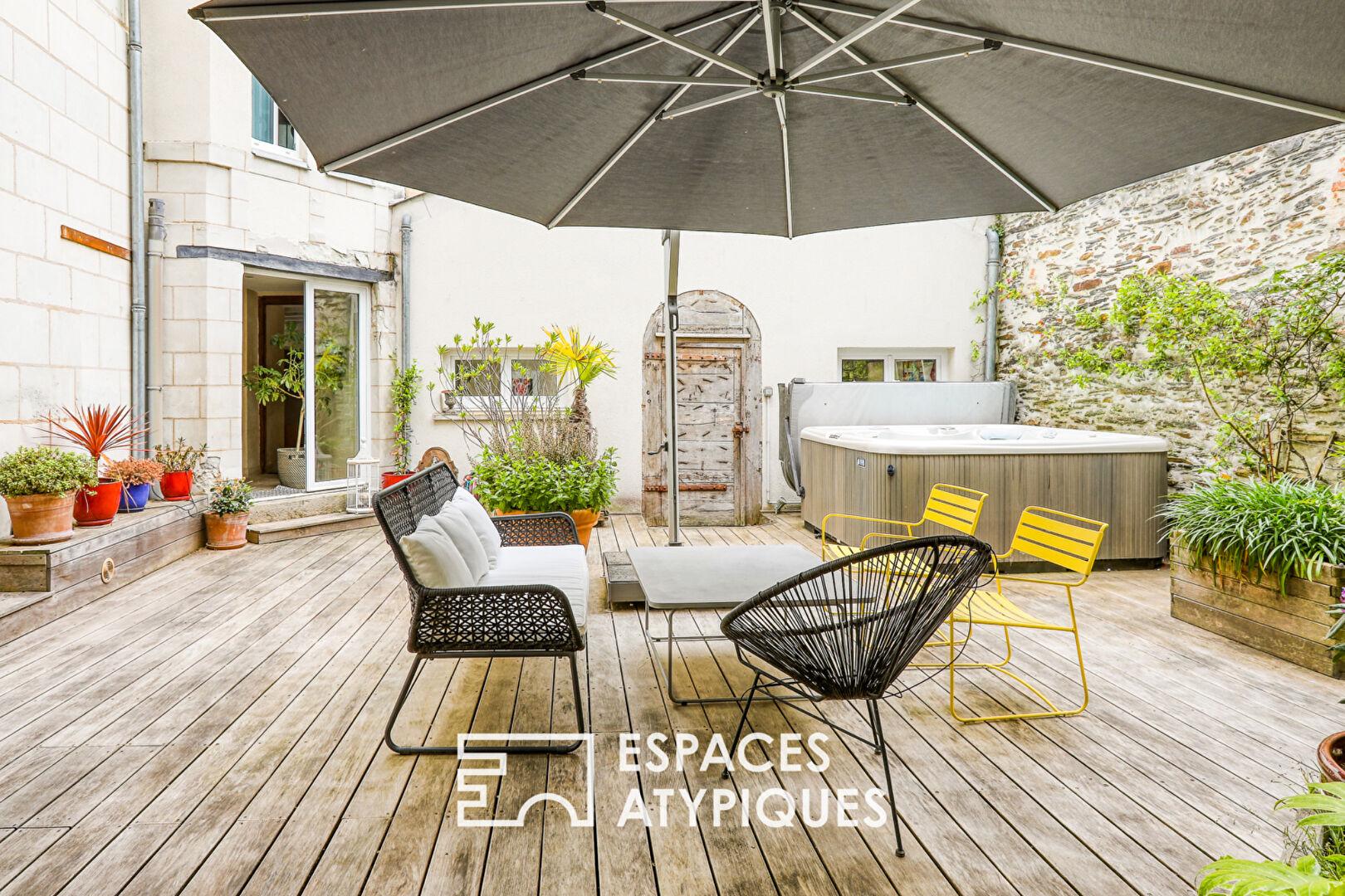 In the heart of Angers’ hyper-center, sheltered from view, this elegant 18th-century residence is arranged around a vast mineral and landscaped patio a true open-air living space.