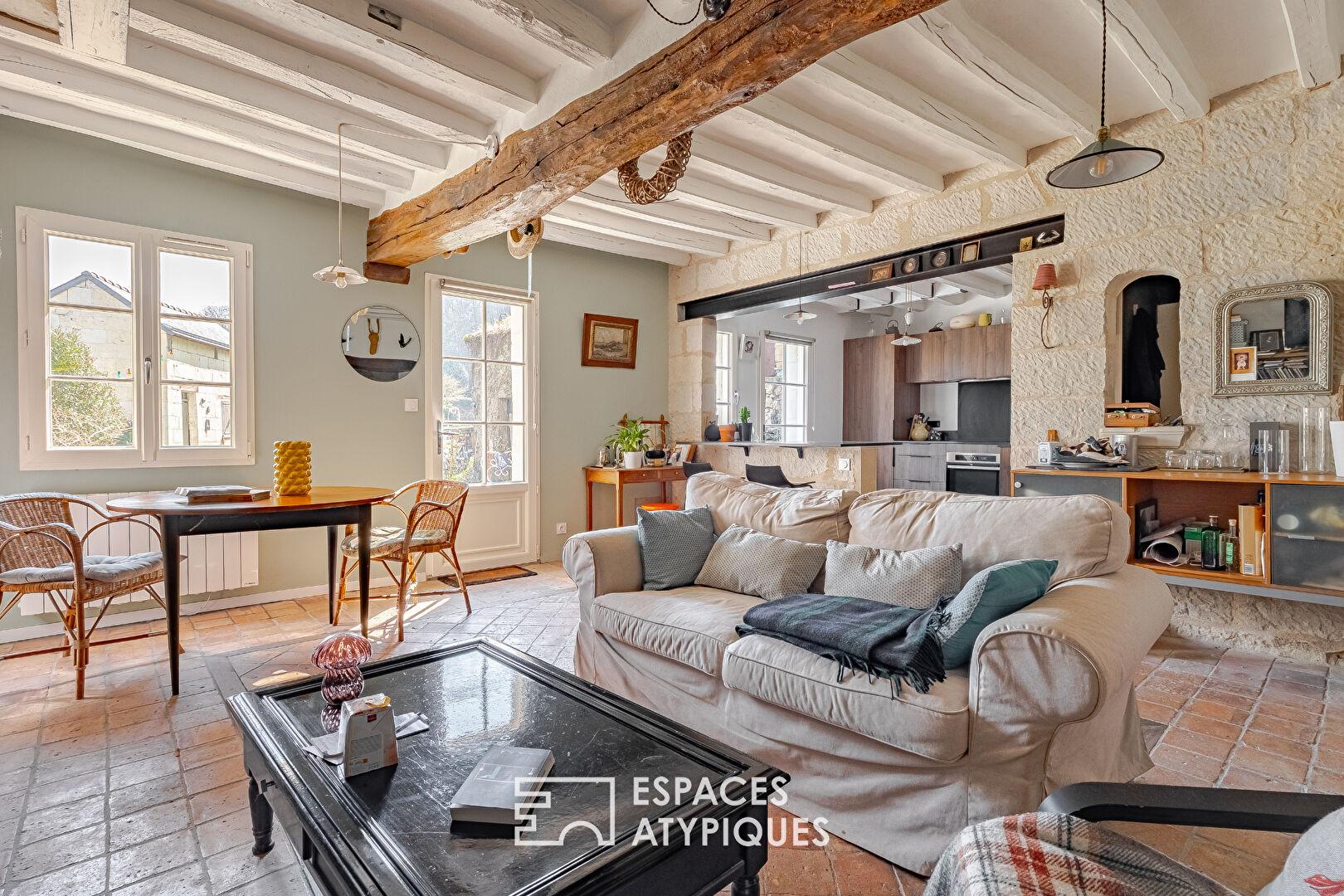 In a hamlet on the banks of the Loire, very close to Gennes-Val-de-Loire, this 109 sq m (1,173 sq ft) traditional tuffeau stone house sits on a 1,532 sq m (16,900 sq ft) plot nestled in a privileged natural setting.