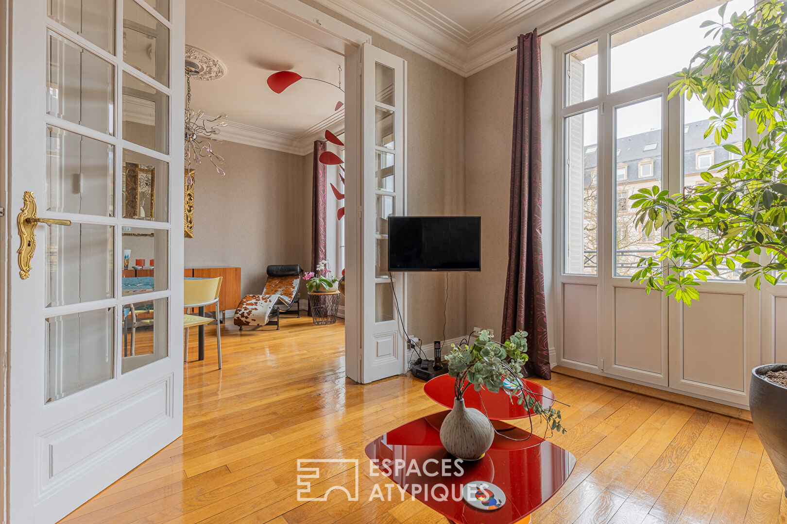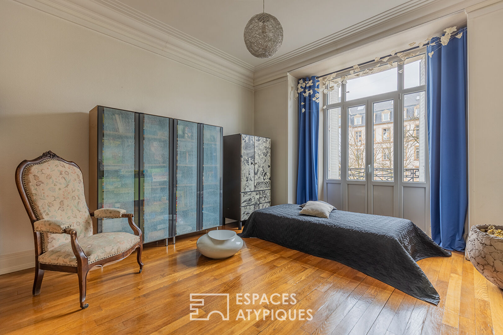 Ideally located in the heart of the sought-after Nouvelle Ville district, this 94 m² first-floor flat boasts all the charm of a bygone era. It has been carefully renovated to enhance its character assets.
