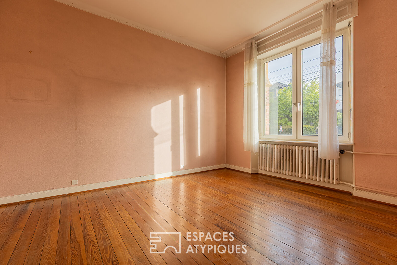 Situated just a stone’s throw from the town centre, this character house built in 1910 spans 188 m² of living space on 300 m² of land. Behind its facade, which reflects all the charm of the past, its generous volumes are just waiting to be reinterpreted in the spirit of the times to reveal their full potential. Its location is both calm and central, next to the banks of the Moselle, and its future owners will also be able to enjoy a pleasant little garden to the rear of the building, complete with garden shed.