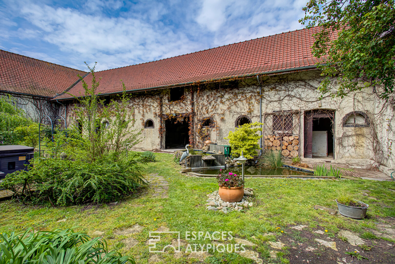 Ideally located in the Hénin-Carvin urban community in Évin-Malmaison, this magnificent 223 m2 square farmhouse stands majestically on a 4000 m2 wooded park near Douai and Lille.