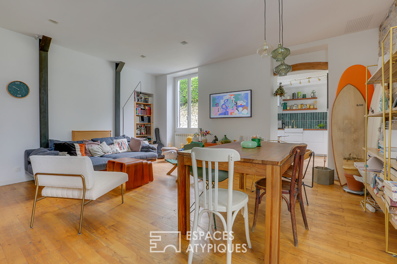 In the Mousserolles district, on the banks of the Adour, in a building occupied solely by housing. Immediate comfort, without work. The staircase of the wooden building and the walls of the common areas in stone attest to a certain charm. On the second floor, the apartment, with a surface area of 66 m2, consists of an entrance leading to a corridor with direct access to the living room with two double-glazed windows overlooking a green space. Then two bedrooms, a bathroom, independent toilets and a fully equipped and well-appointed kitchen. The floors are parquet and there are stone walls in the living room and in one of the bedrooms. The apartment has been optimized to make the whole comfortable and welcoming. The latter has the ideal location for strolling around the neighborhood, the city and the region. The Mousserrolles district also means having France and the world within reach: Bayonne train station is accessible in less than 10 minutes by car and Biarritz airport in 20 minutes.
