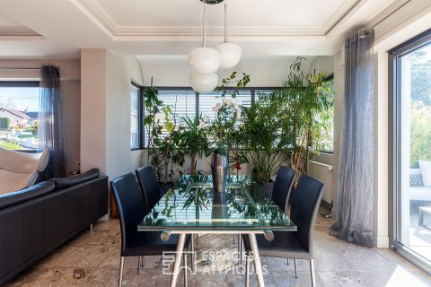 Located 15 minutes from Strasbourg, this family house built in 1973 offers 163 m² of living space on 5 acres of land. It has benefited from a contemporary quality renovation by an architect to enhance its potential.