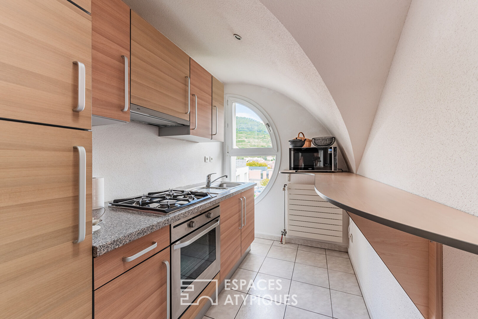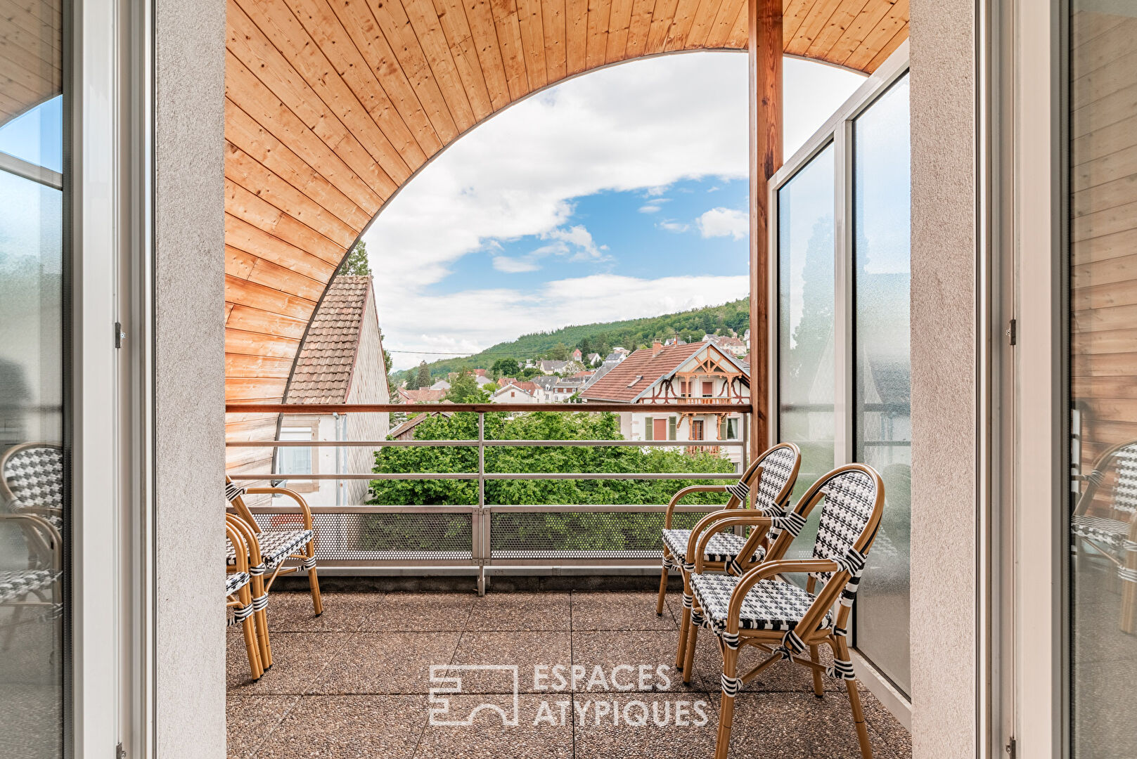 Nestling in the heart of Guebwiller town centre, at the top of a recently renovated residence with lift, this 57 m² flat has a pleasant terrace overlooking the vineyards.