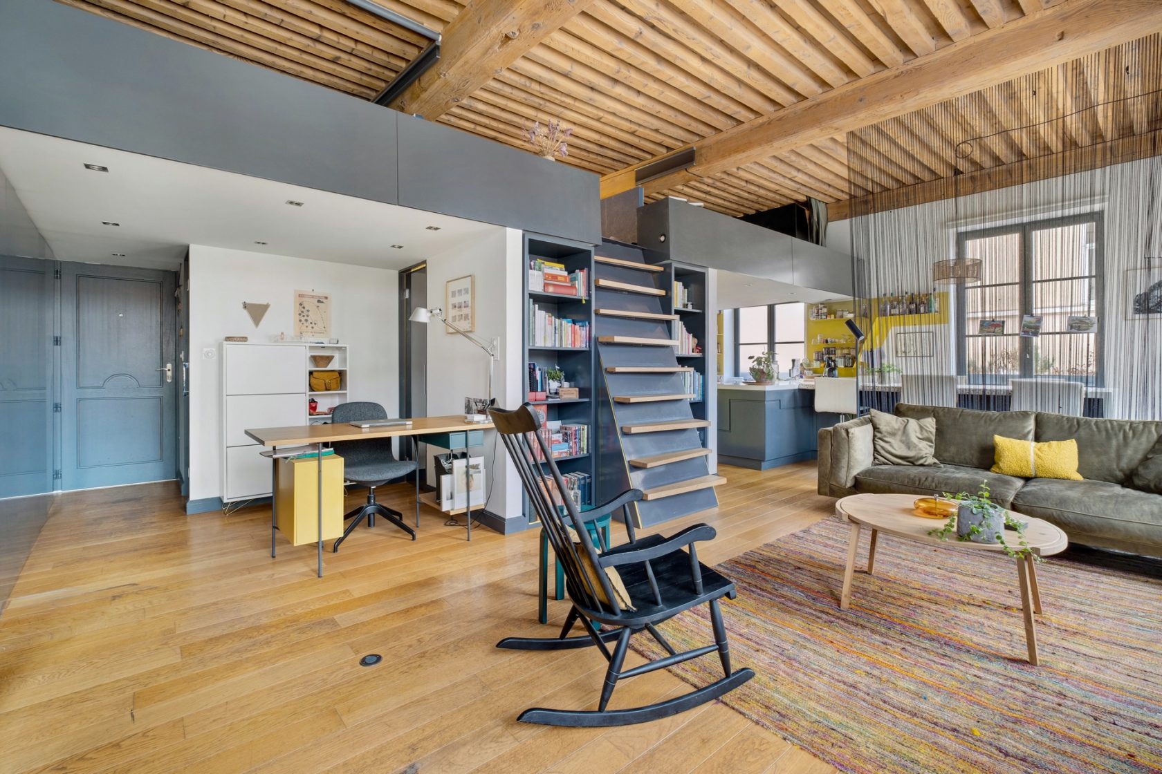 Located in the heart of the slopes, halfway between the Croix-Rousse plateau and the Presqu’île, this former canuts workshop has been completely renovated to make way for a beautiful 79sqm apartment (54sqm Carrez law). It takes place on the 4th floor of an old building. The entrance, with plenty of made-to-measure storage, leads to a beautiful bright living room of 44m2, offering an unobstructed view and a double South and East exposure. An open and fully equipped kitchen faces the living area, all taking place under a magnificent French ceiling. A modern bathroom and a separate toilet complete this space. Overlooking the living room, a mezzanine offers 2 separate sleeping areas, with storage, as well as a cozy space conducive to reading. The contemporary renovation combined with the charm of the old, the luminosity and the privileged location, make this property a real favorite. A cellar Subject to co-ownership status: 11 lots Annual charges: EUR828 ENERGY CLASS: D / CLIMATE CLASS: B Estimated average amount of annual energy expenditure for standard use, based on the energy prices of the year 2021: between EUR660 and EUR950 Contact: Adrien – 06 09 55 70 81