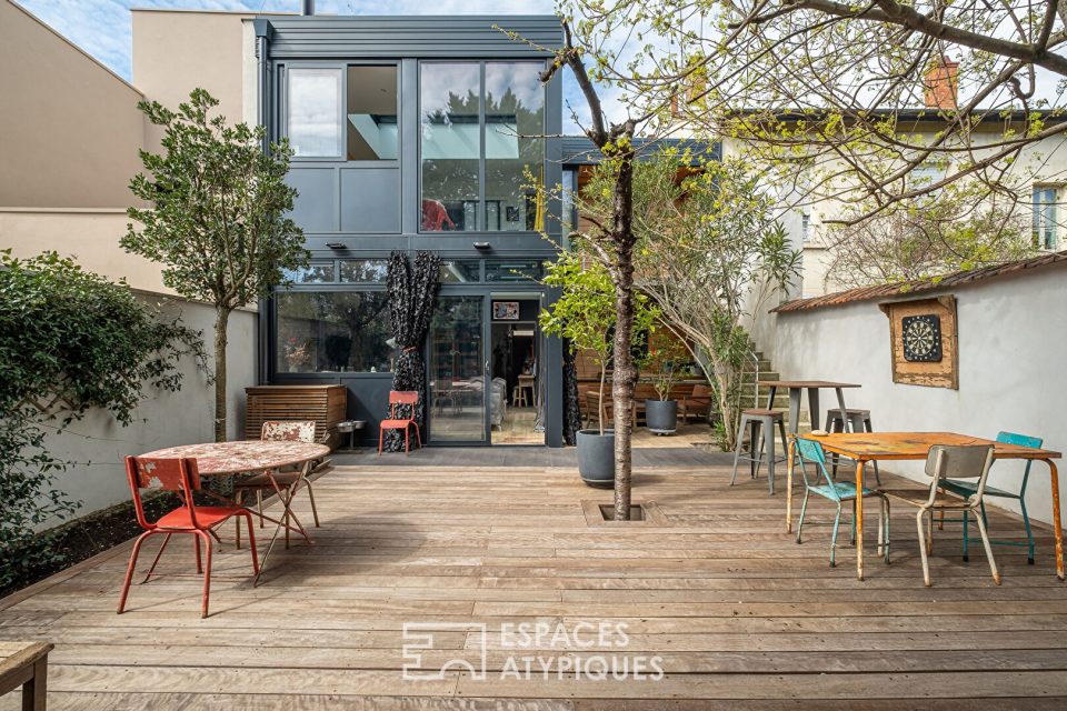 Nestled on a quiet, residential street, close to local shops, schools, and transport, this house benefits from a sought-after location in Lyon. Resolutely atypical with its split-level layout, generous volumes, and high-quality features, this rare property embodies the successful combination of character and modernity.