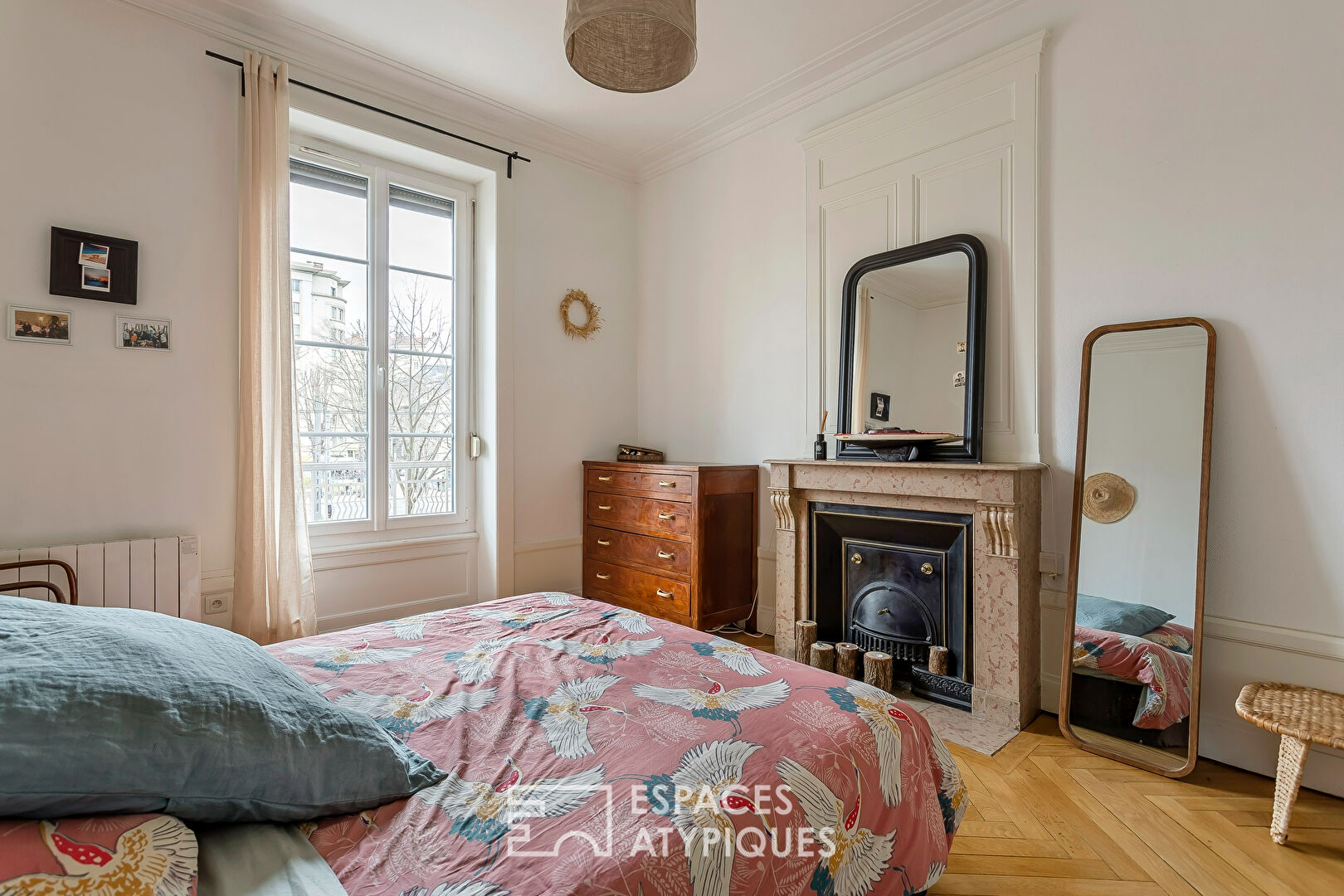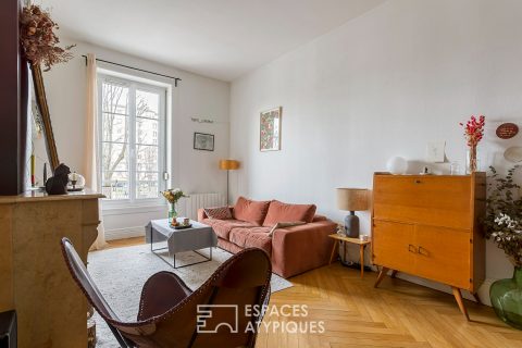 On the raised first floor of a structured Art Deco building, this 70.74sqm apartment (Carrez) offers beautiful volumes. The entrance opens onto a hall with on either side a large bedroom with fireplace and a contemporary bathroom. This is followed by the living room, consisting of a living room with a pretty fireplace and a dining room. At the end of a hallway with storage, an independent equipped kitchen benefits from a balcony. A second bedroom also possible as an office and individual amenities complete the visit. A cellar of 5sqm completes the whole. Seasoned parquet, renovated paving, marble fireplaces and quality decoration give this property a certain cachet. Additional information: – Dressing room, – Quality renovation, – Balcony on the kitchen, – Clear and impregnable view, – Bicycle garage in the condominium. ENERGY CLASS: D – CLIMATE CLASS: B Estimated average amount of annual energy expenditure for standard use, based on energy prices for 2015: between EUR716 and EUR809 For the walk, Parc Sergent Blandan 10 mins walk, PERRACHE STATION: 2 tram stops, Jean-Macé STATION: TER, 2 mins walk, METRO: Jean Macé station at the foot of the building, BUS: C4, C7, 64 Jean Macé stop at the foot of the building, quick A7 access Schools, market and shops in the immediate vicinity. Property subject to co-ownership status: 159 including 73 residential ENERGY CLASS: D – CLIMATE CLASS: B Estimated average amount of annual energy expenditure for standard use, based on energy prices for the year 2015: between EUR716 and EUR809 Contact: Axel – 06 67 68 57 45