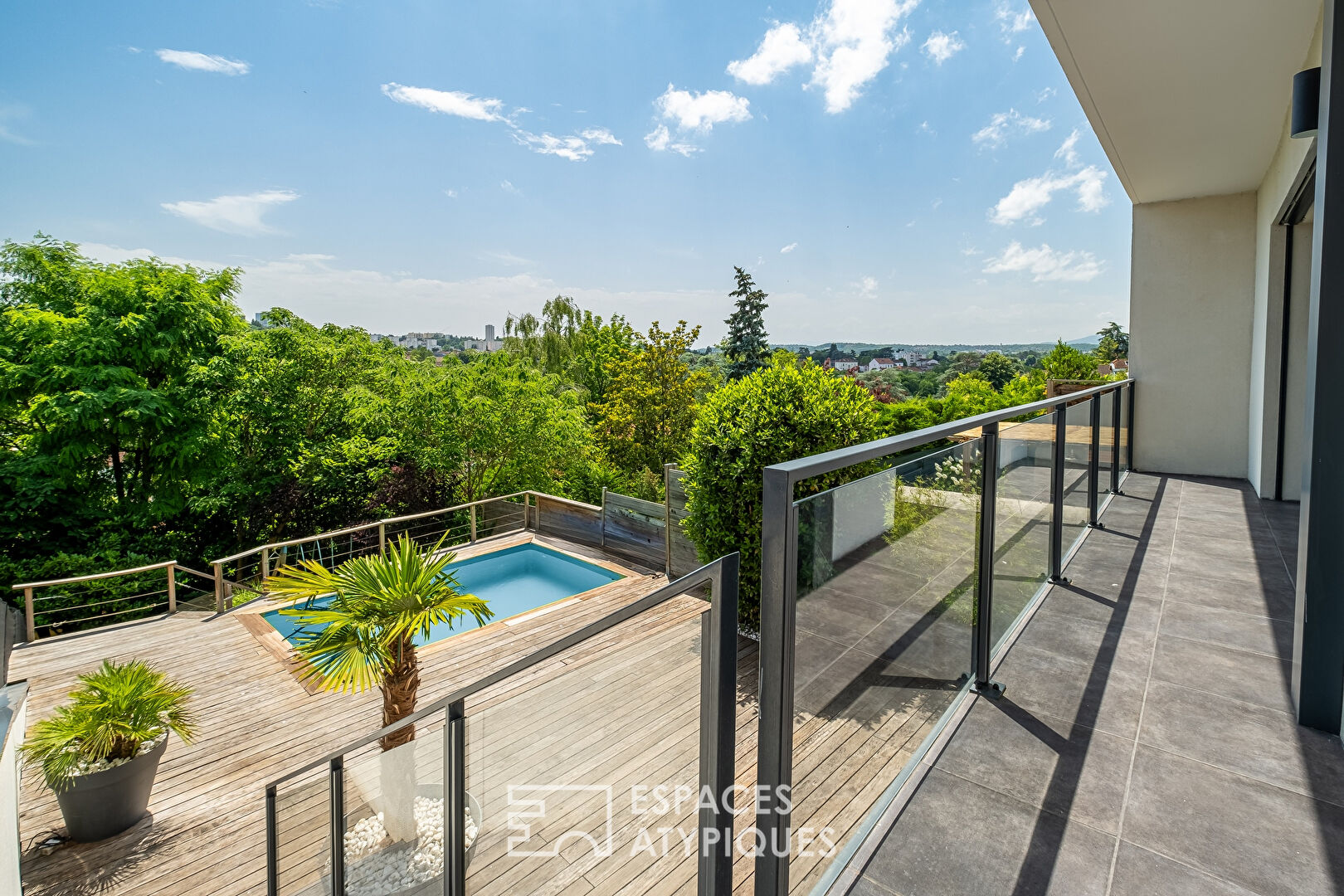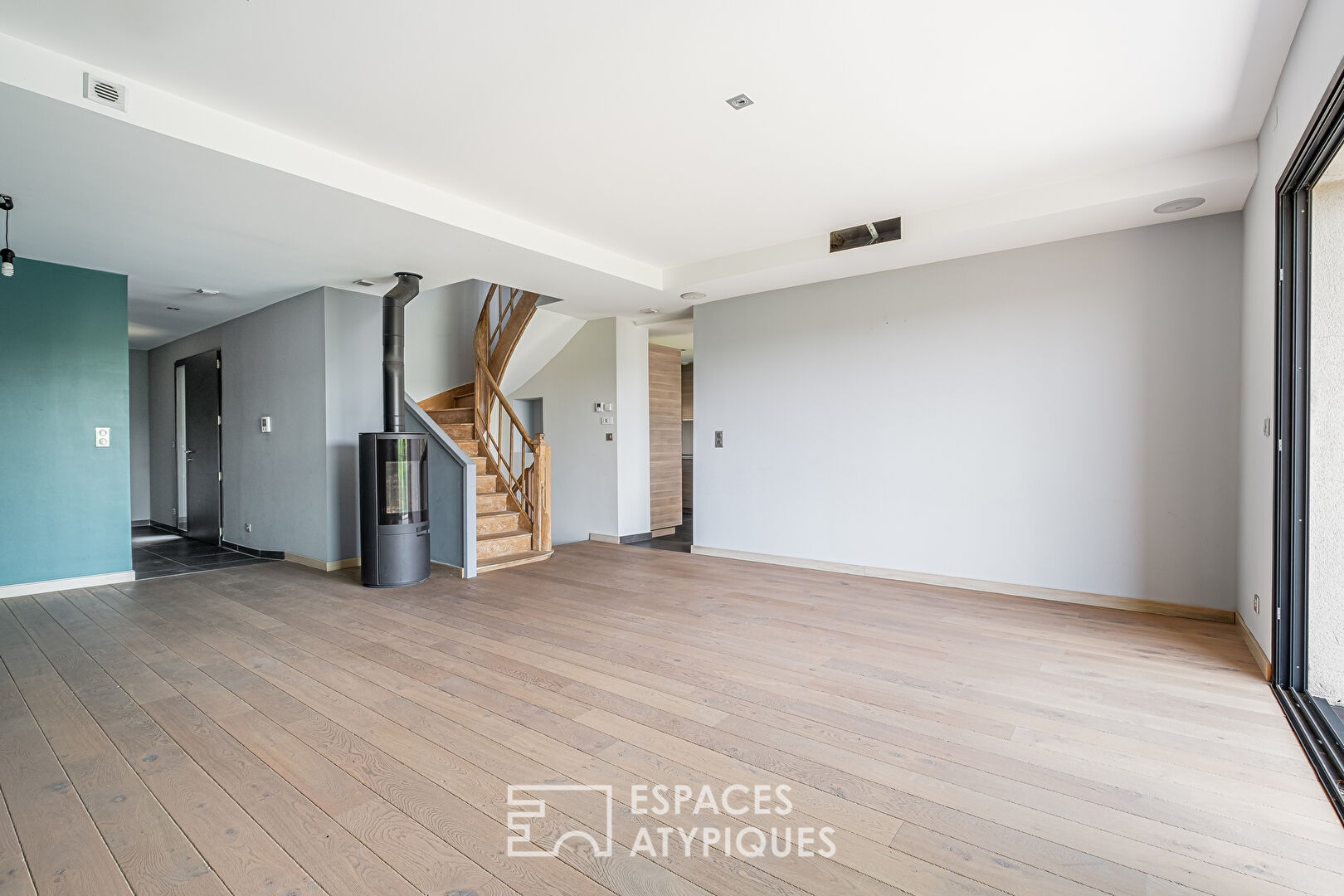 Located in the town of Écully, a few minutes from the center, this charming house covers 132 m2 on four levels and is located in a quiet and residential area. The entrance opens onto a vestibule which leads directly to a large living room, bathed in light and enjoying a breathtaking view.