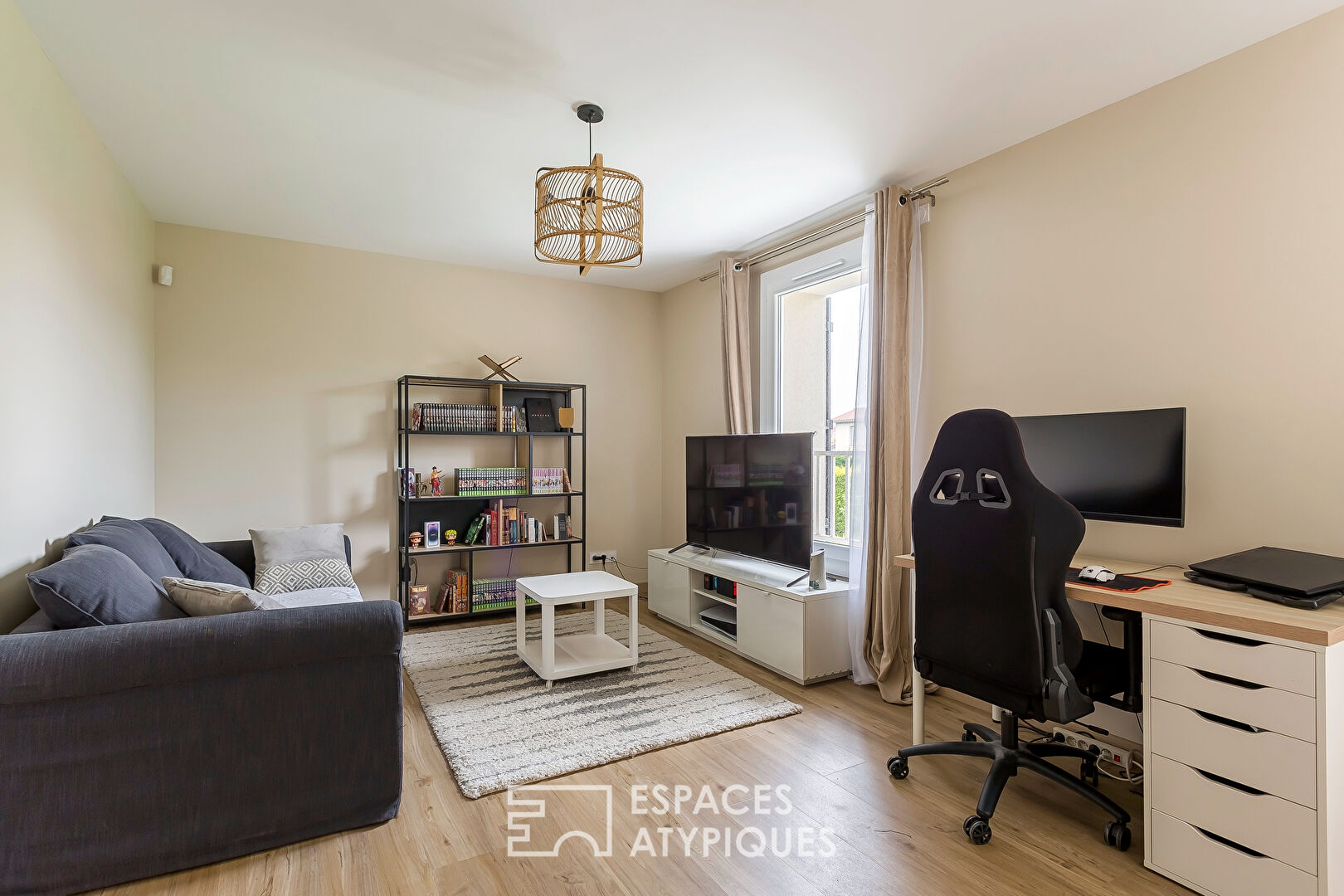 Located in the town of Saint-Genis-les-Ollières, this house renovated in 2021 of 115m2 with a veranda of 20m2 is erected on a plot of 534m2 and takes place in a quiet housing estate and without vis-à-vis 10 minutes walk from walk from the village center.