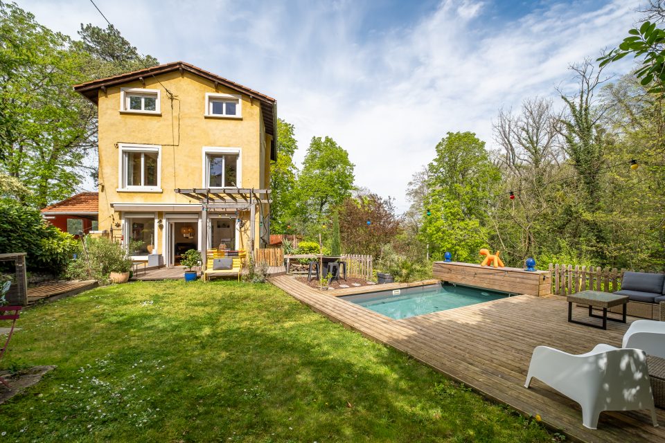 Located in the very popular town of Saint Cyr au Mont d’Or, five minutes from the center of the village and all amenities, this architect-designed house of 170sqm with garden and swimming pool was built in 2018 on a plot of 758sqm. The entrance, thought of as a cloakroom, is only the appetizer of a successful renovation carried out with a master’s hand. The living room, cradled by generous openings, gives a glimpse of the garden and the swimming pool. It is composed of a fully equipped contemporary kitchen which faces a living room with fireplace. Upstairs, a corridor serves a real master suite with dressing room and private bathroom as well as two additional bedrooms sharing a bathroom. A lower level hosts a room with a shower room and a laundry room. The privileged location, the volumes and the luminosity are the undeniable assets of this exceptional house. Double garage. ENERGY CLASS: B / CLIMATE CLASS: A Contact – Loic: 07 61 09 19 75