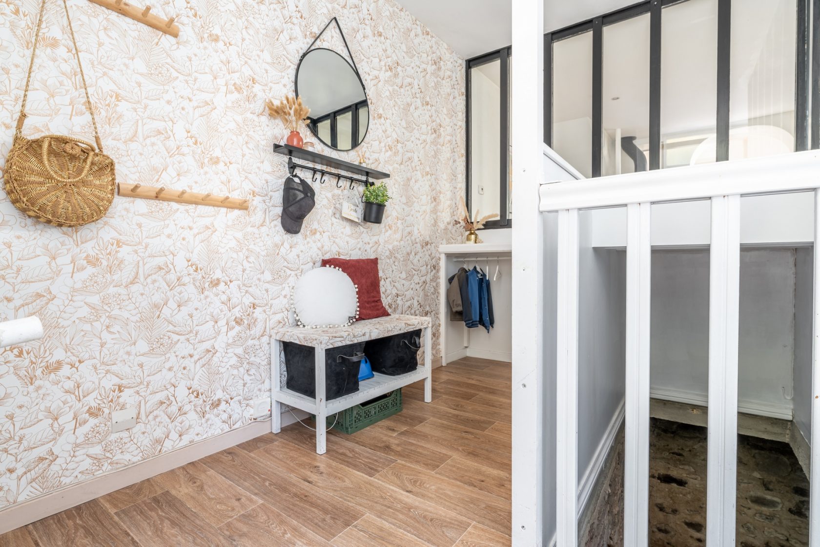 The entrance hall, magnified by a semi-open glass roof, opens onto a beautiful fitted kitchen and the dining room, as well as a warm living room decorated with a wood stove. A hallway then provides access to the laundry room, reinforcing the functional aspect of this first level. The staircase leads to the three bedrooms upstairs, two of which have built-in wardrobes, as well as a bathroom. Finally, the top floor, impressive with its beams and its volume, can accommodate a master bedroom or a TV room/games room. The house also has an intimate and quiet courtyard, not overlooked, allowing you to enjoy the outdoors in complete peace and quiet.