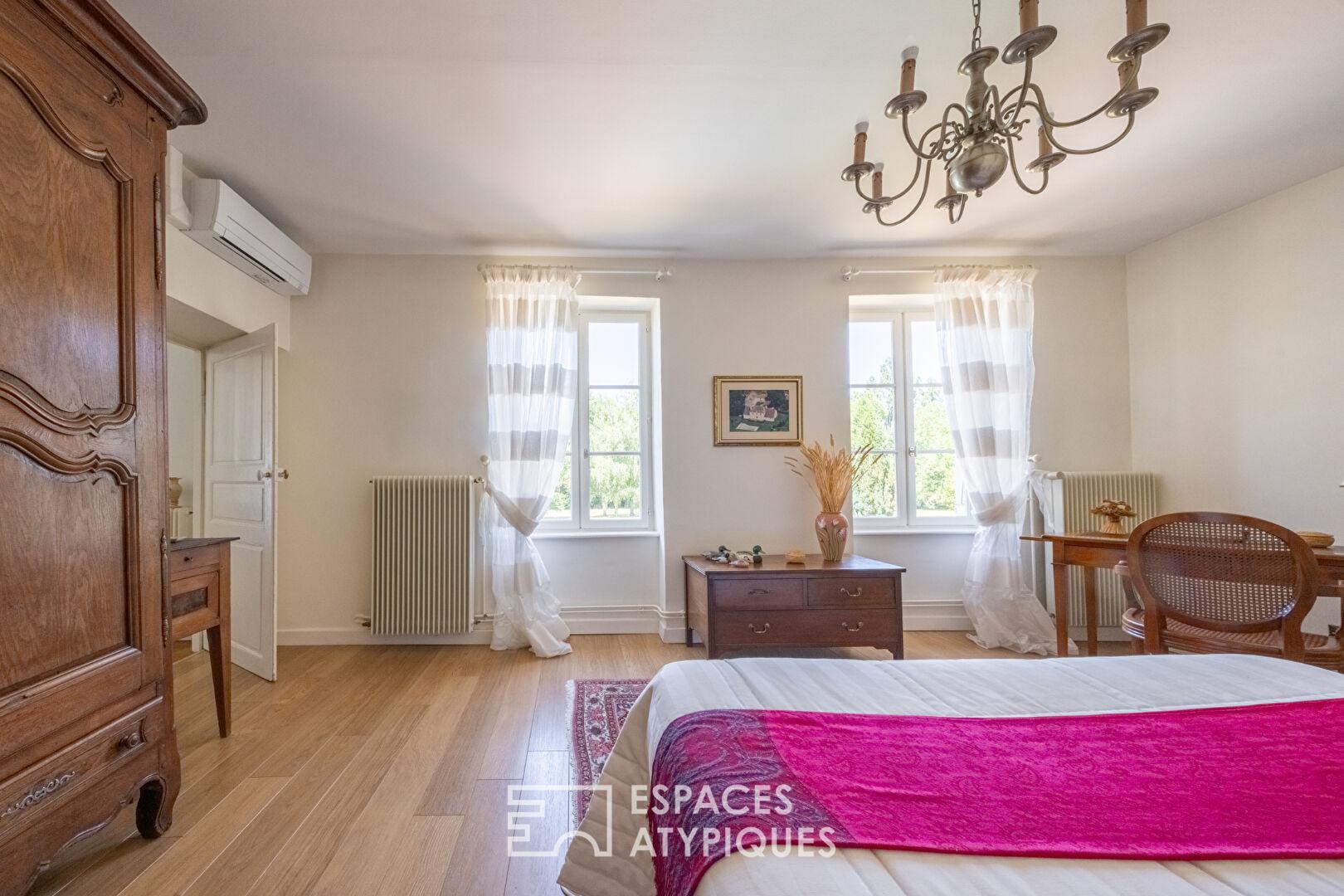 Just ten minutes from the city centre of Chalon-sur-Saône and twenty-five minutes from Beaune, this elegant 19th-century bourgeois residence offers over 250 sqm of living space, nestled in the heart of a beautifully landscaped park of more than 15,000 sqm with an orchard and a swimming pool. Once the home of a hat maker, it captivates with its refined character, rich history, and serene atmosphere.