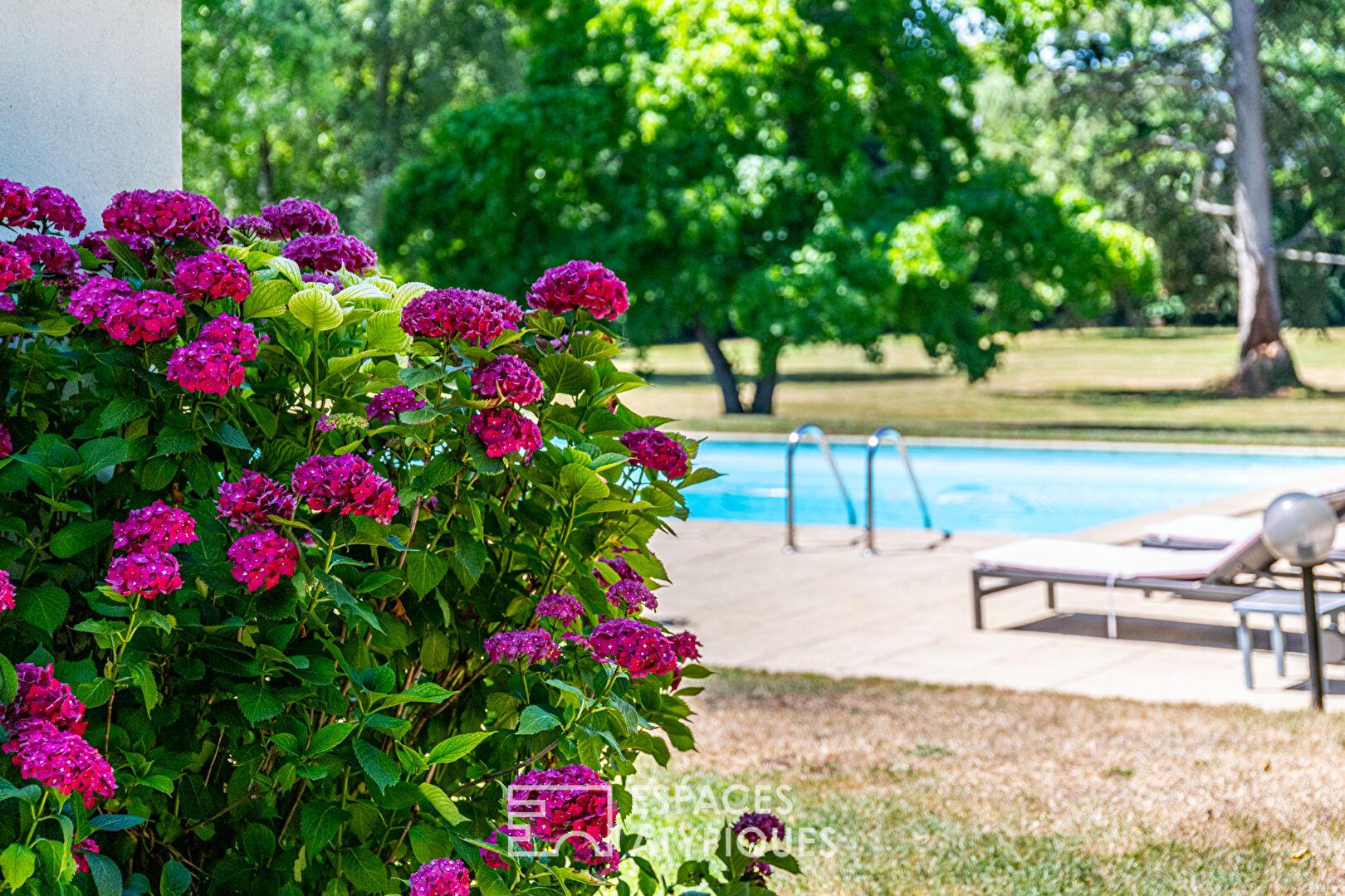 The outdoor areas offer a rare countryside setting: a vast tree-lined park, an orchard, a large swimming pool inviting relaxation, and several outbuildings. Among them, an independent guest bedroom with private shower room, a games or billiard room, a spacious 80 sqm barn, and a workshop provide numerous possibilities for conversion.