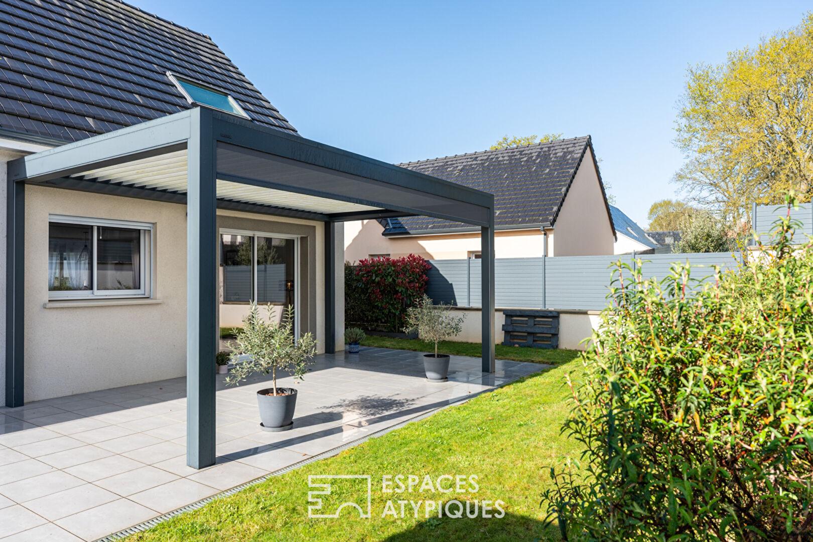 Outside, the enclosed garden offers a pleasant and easy-to-maintain living environment. The terrace, sheltered by a bioclimatic pergola, allows you to fully enjoy the outdoors in every season. The whole area offers a balance between green space and relaxation, ideal for entertaining or simply unwinding. The house benefits from a convenient location, in close proximity to shops, schools, services, and public transport, while maintaining a peaceful setting. The nearby golf course is a real asset for enthusiasts as well as those seeking a privileged environment. This property stands out for its optimized layout, modern amenities, and potential for future development. A contemporary house with well-designed spaces, offering a comfortable living environment on the outskirts of Le Mans.
