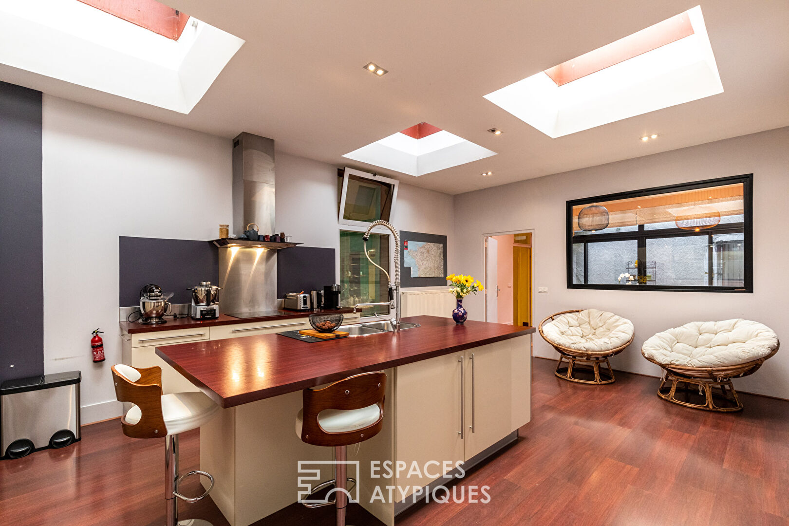 The very large fully equipped high-end kitchen benefits from several skylights giving a very warm atmosphere to this important space for the family.