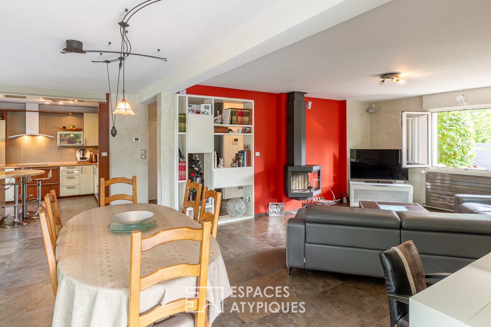 Cette maison d’environ 200 m² située dans un cadre verdoyant, a subi au fil des années de nombreuses transformations dans un esprit contemporain, lovée au coeur d’un jardin arboré avec piscine et jacuzzi. Ses espaces ont été remaniés pour créer un lieu de vie contemporain largement ouvert sur l’extérieur. Les matériaux utilisés pour les améliorations successives sont de qualité et au goût du jour, sols et plafonds sont en accord et une domotique moderne rend la maison intelligente. L’entrée éclairée par une verrière conduit à un vaste espace de vie avec sa cuisine ouverte sur la salle à manger et le salon. Dans le prolongement une véranda chauffée en hiver s’ouvre sur les terrasses et la piscine. L’orientation de la maison permet de profiter d’une lumière et d’un ensoleillement très agréable en toute saison. Un demi-niveau propose une chambre parentale dotée d’une salle d’eau et d’un espace bureau ou dressing. Ensuite quelques marches conduisent à une mezzanine éclairée par un large velux avec une utilisation ajustable et variable en fonction de ses besoins. Deux vastes chambres lumineuses prennent place à ce niveau et se partagent une très grande salle de bain avec douche et baignoire balnéo. Un pool house, deux grands garages et une cave complètent généreusement cette habitation. Située à quelques kilomètres seulement des commerces, transports, écoles, accès autoroute et gare, cette maison a su concilier douceur de vivre dans un secteur privilégié avec les facilités d’une agglomération dynamique. Contact Martine : 06.66.44.49.10