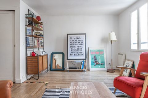 Near rue Montorgueil, this duplex of 70.40 m2 Carrez nestled on the 4th floor of a building with lift has an 18 m2 terrace.
