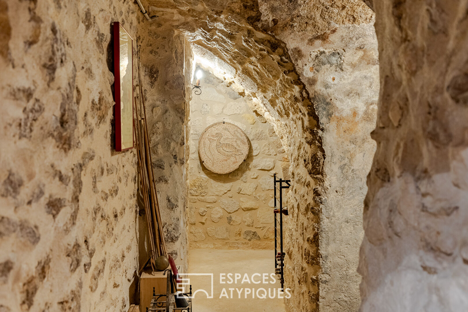 The apartment also has an authentic fitted wine cellar and offers additional space in this unique property.