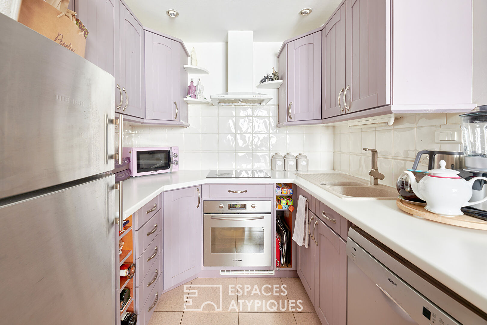 Located near rue des Martyrs, in a small charming building, this house-style duplex totals 74.67 m2 (38.09 m2 Carrez).