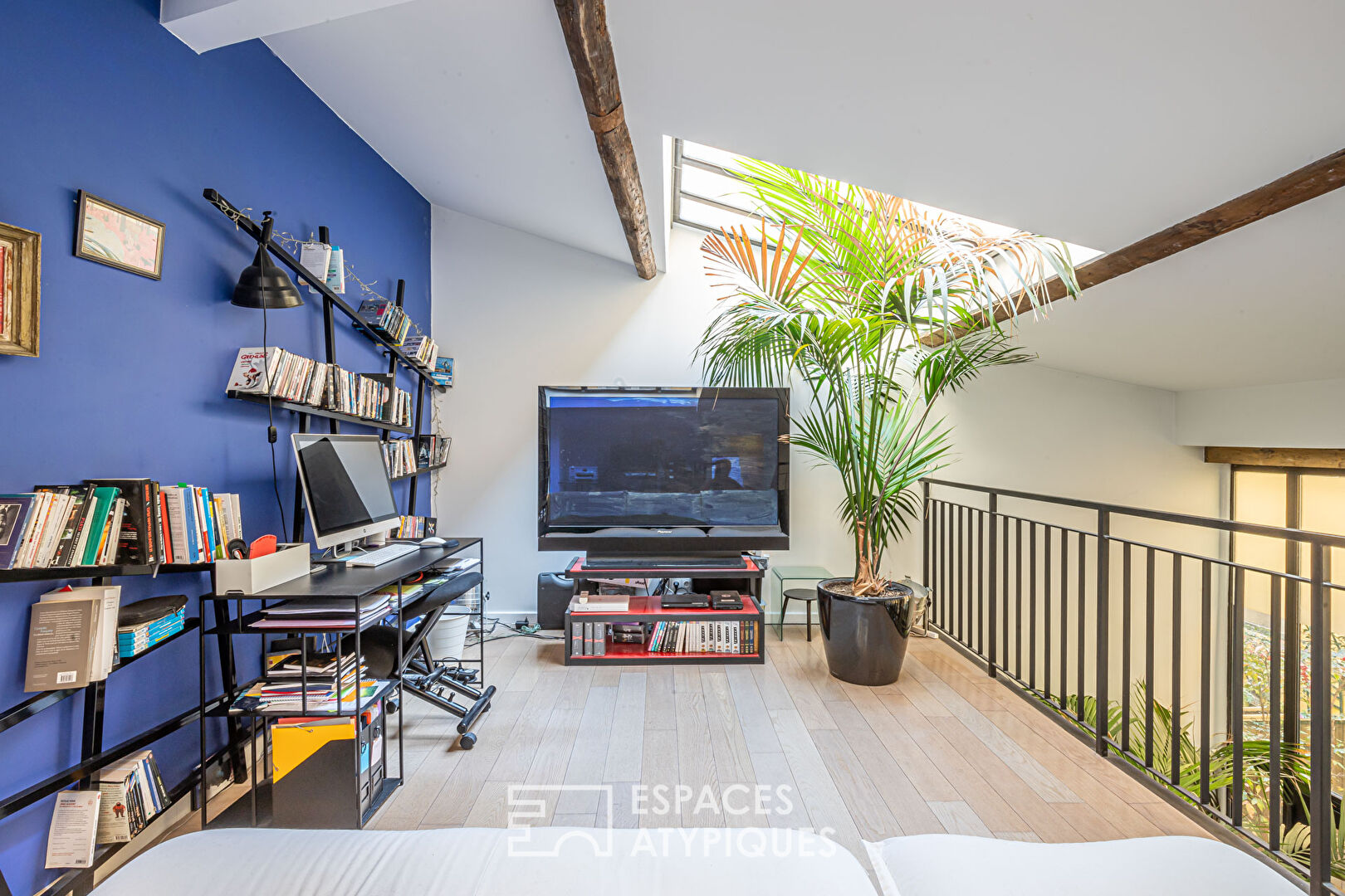 Lots of character for this resolutely loft duplex located near the shops between the streets of Hauteville and Faubourg Poissonnière, offering beautiful volumes and Olympian calm.