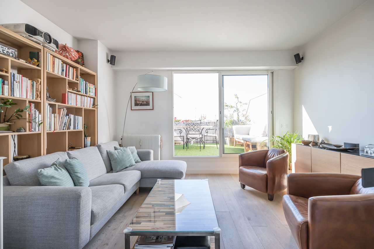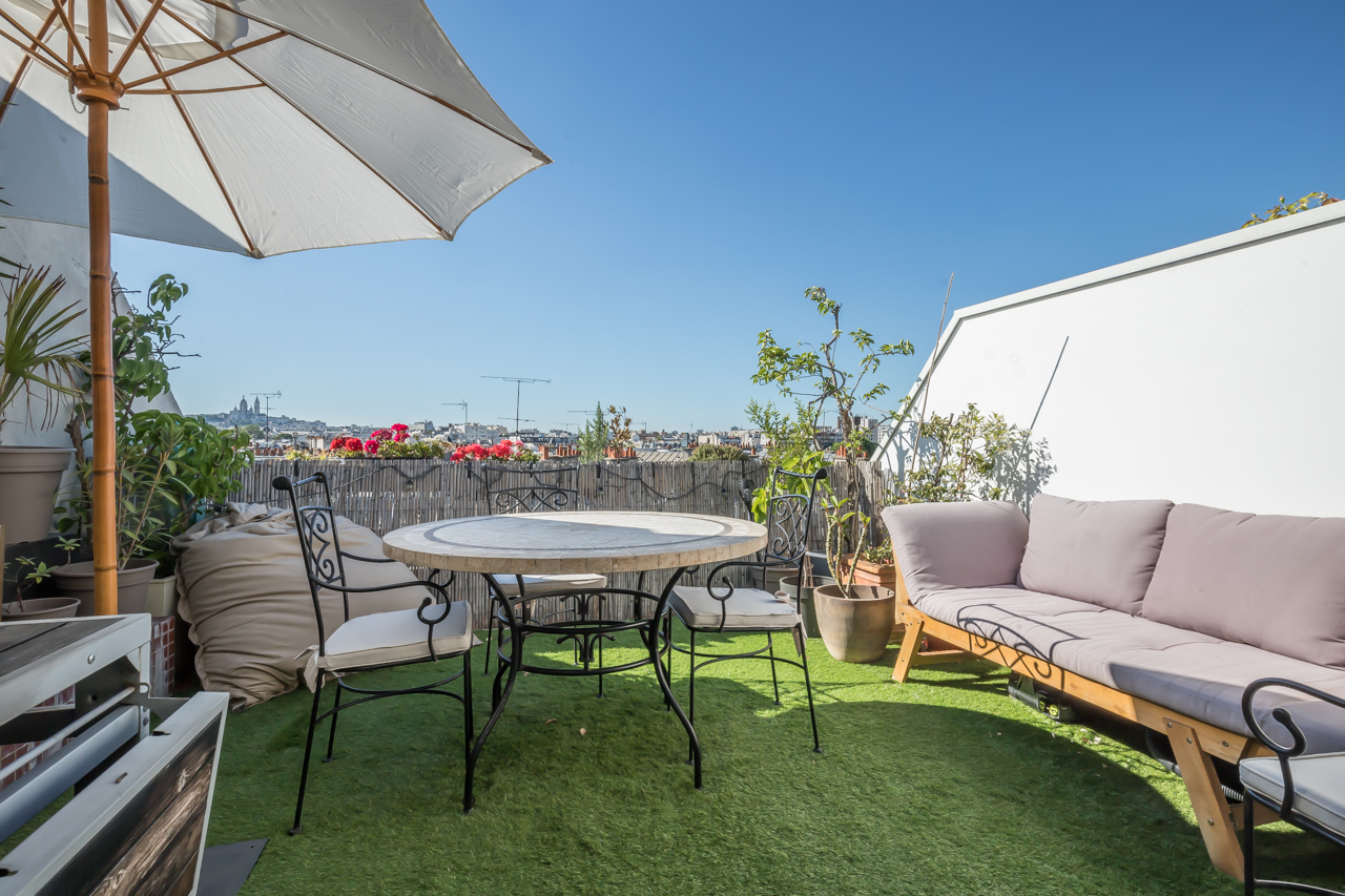 Between the Saint-Martin canal and the Saint-Louis hospital, this top-floor duplex of 68m2 (67,13m2 Carrez) benefits from an open-air terrace with an unobstructed view of the Sacré Coeur and the Eiffel Tower.