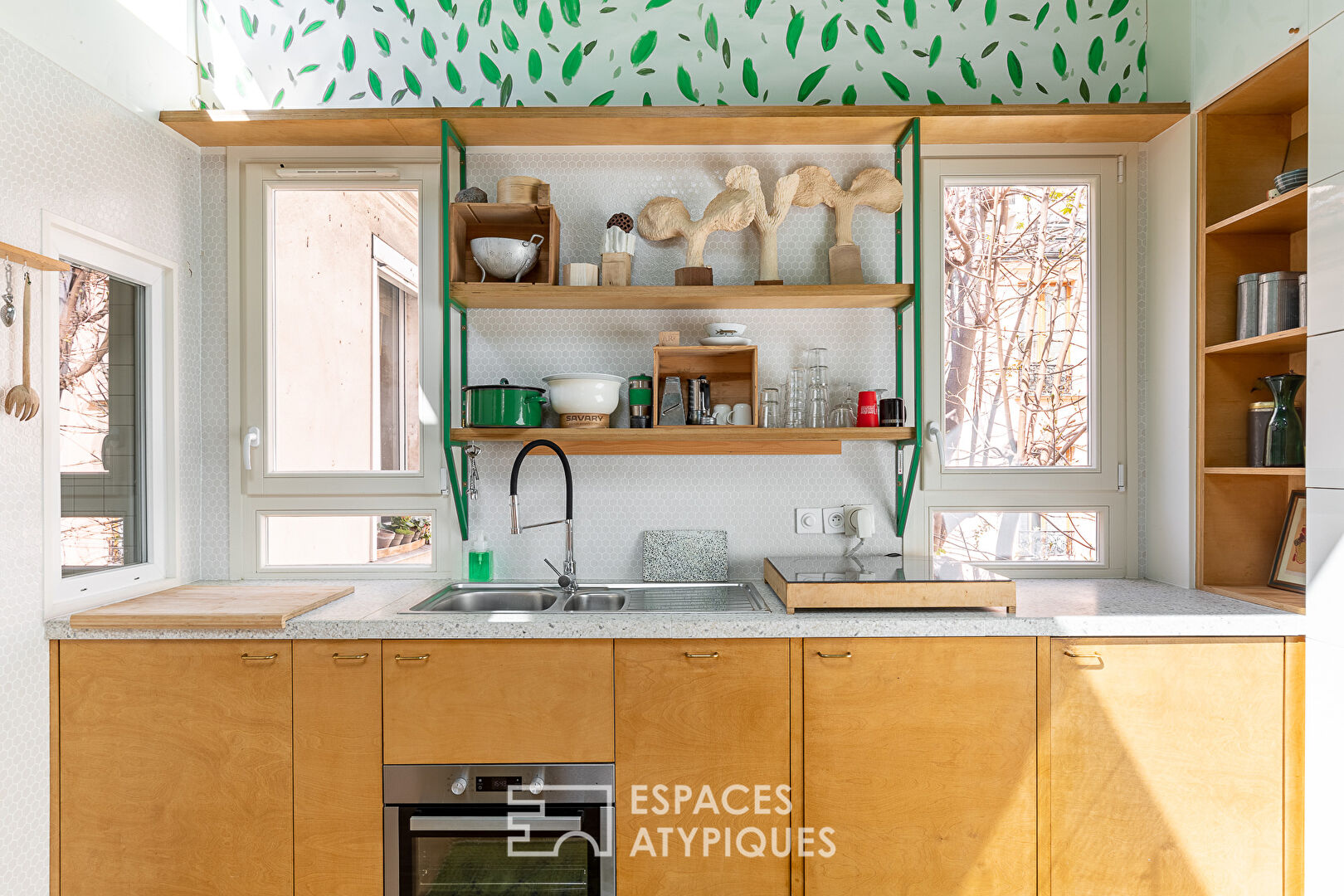 Located a few steps from the Cité Morlet, in the peace of a green courtyard, this duplex of 45.41m2 on the ground (36.02m2 Carrez) is nestled on the first and last floor of a small building dating from the 18th century.