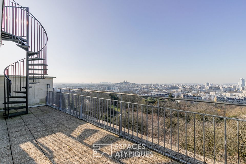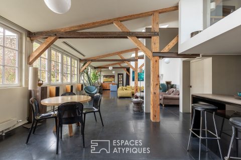 On the edge of the Marais, this top floor duplex designed by Yann Le Coadic, hidden at the bottom of a green, paved courtyard in a former 19th century convent, totals 141.4m2 on the floor (126.4 m2 Carrez).