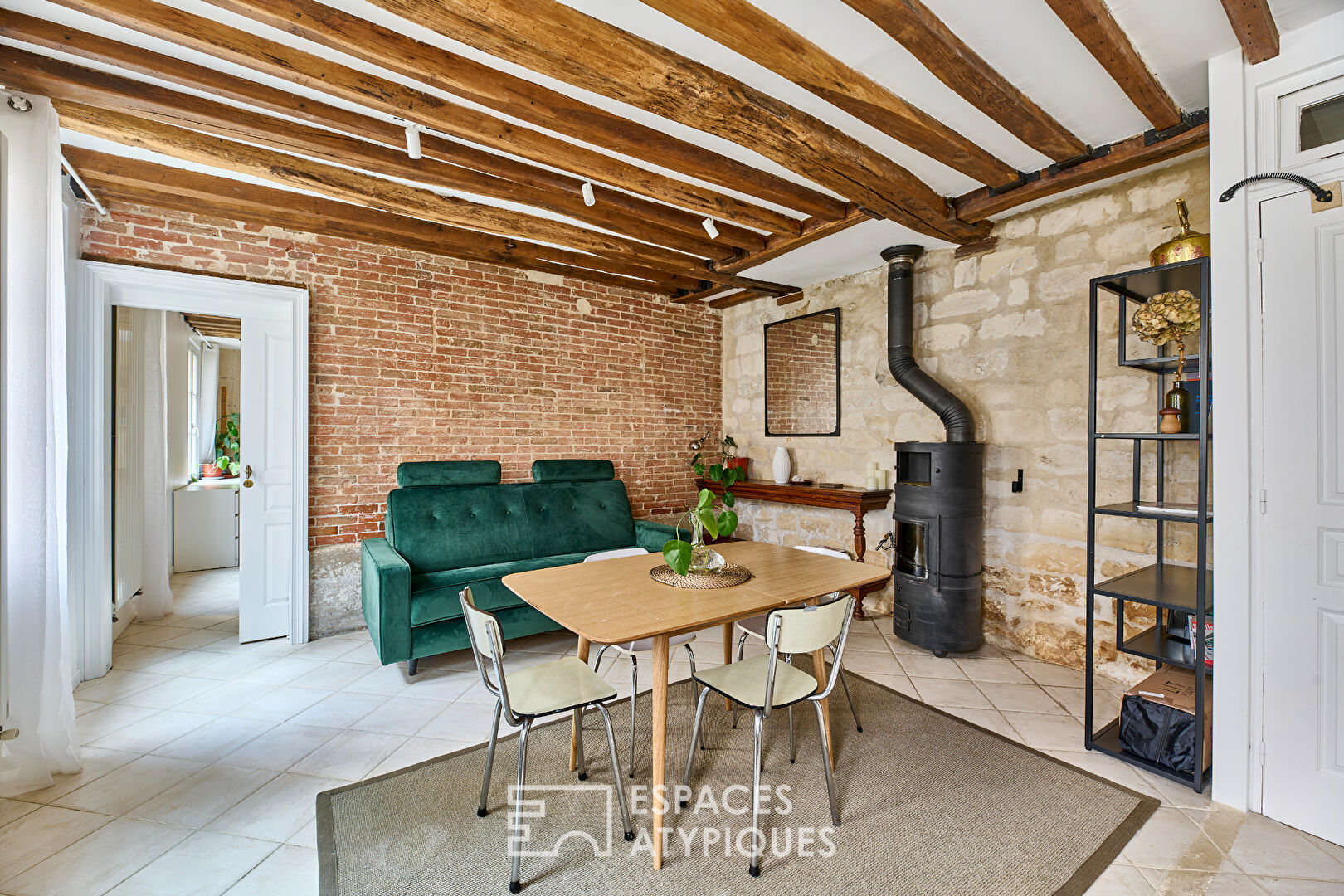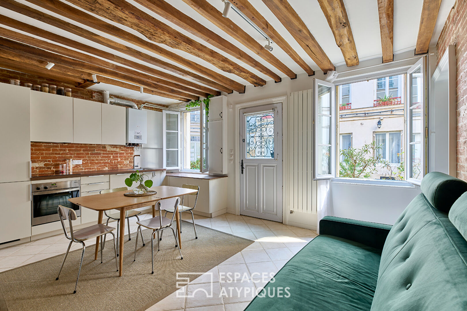 Nestled in a secure and peaceful courtyard, this 45.10 m² (490 sq ft) two-room apartment (Carrez law) feels like a small house. It captivates with its authentic character and warm atmosphere.
