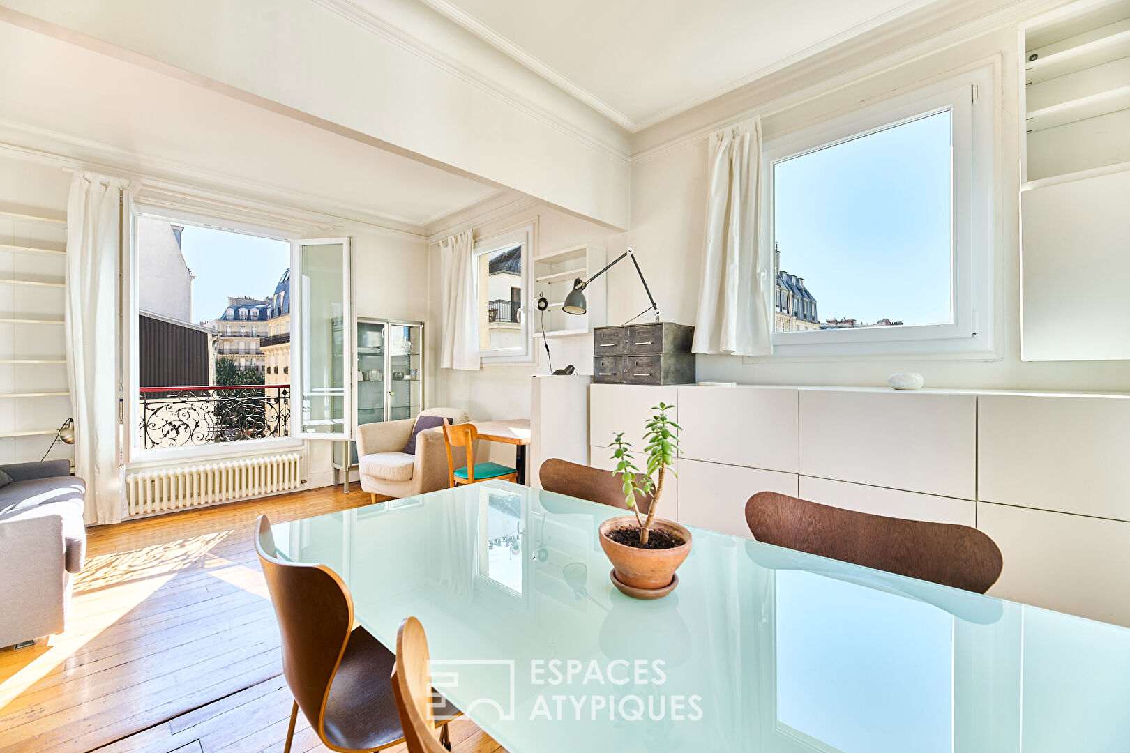 The optimized plan without loss of space, whose layout favors the distinction between the living space and the sleeping area, makes this apartment a living space conducive to entertaining.