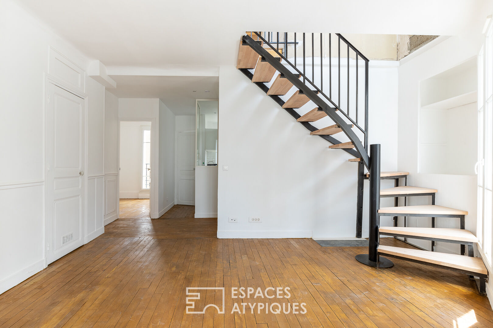 Located between the Bibliothèque and Olympiades metro stations, on the 3rd and top floor (no lift), this apartment with a total area of 102 m2 (89.6 m2 Carrez) enjoys an ideal location on the top floors of an old building.
