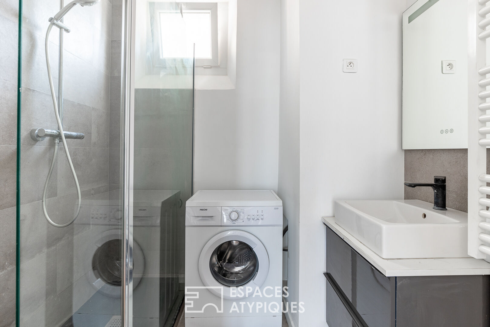Two bedrooms and a bathroom complete this level. Upstairs, a 50 sqm platform with balcony reveals its framework and remains to be fitted out as needed. The possibilities are numerous and will delight the most creative.