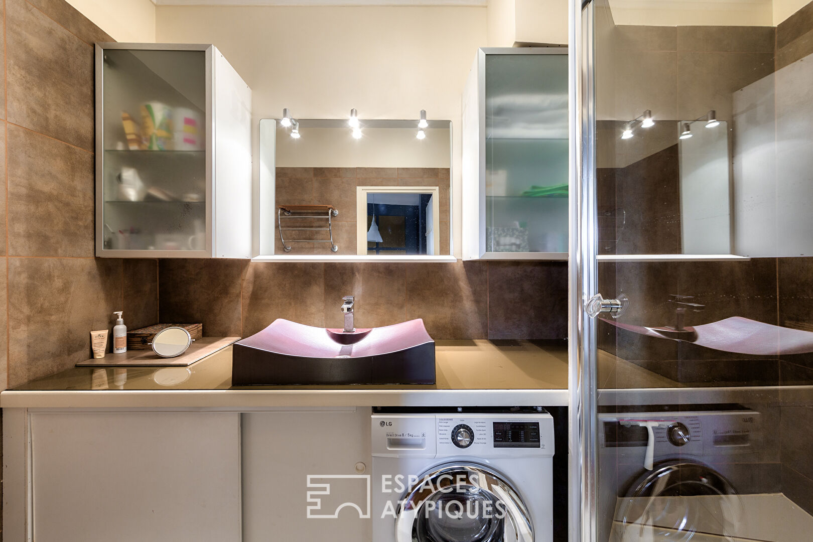A contemporary bathroom completes the property. The ideal location, the absolute calm and the loft spirit of this apartment make it a truly “favorite” property.