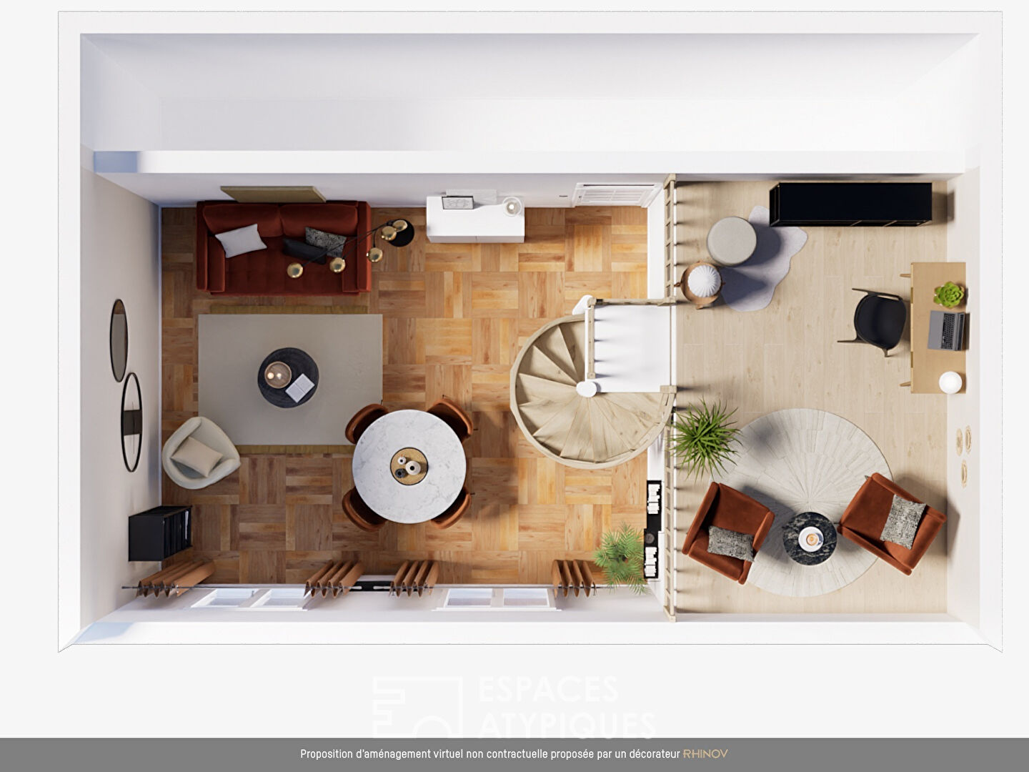 Upstairs, an area of 65 m2 of attic space can be arranged as you wish, with the possibility of creating a mezzanine which would overlook the living room. By freeing up the ceiling height, the exposed beams as well as the 2 large existing roof windows, the living room will display all its character and charm.