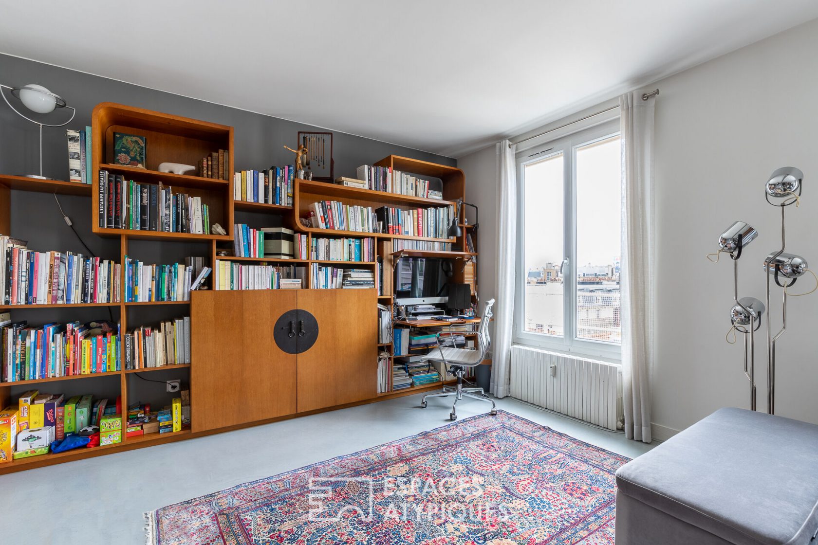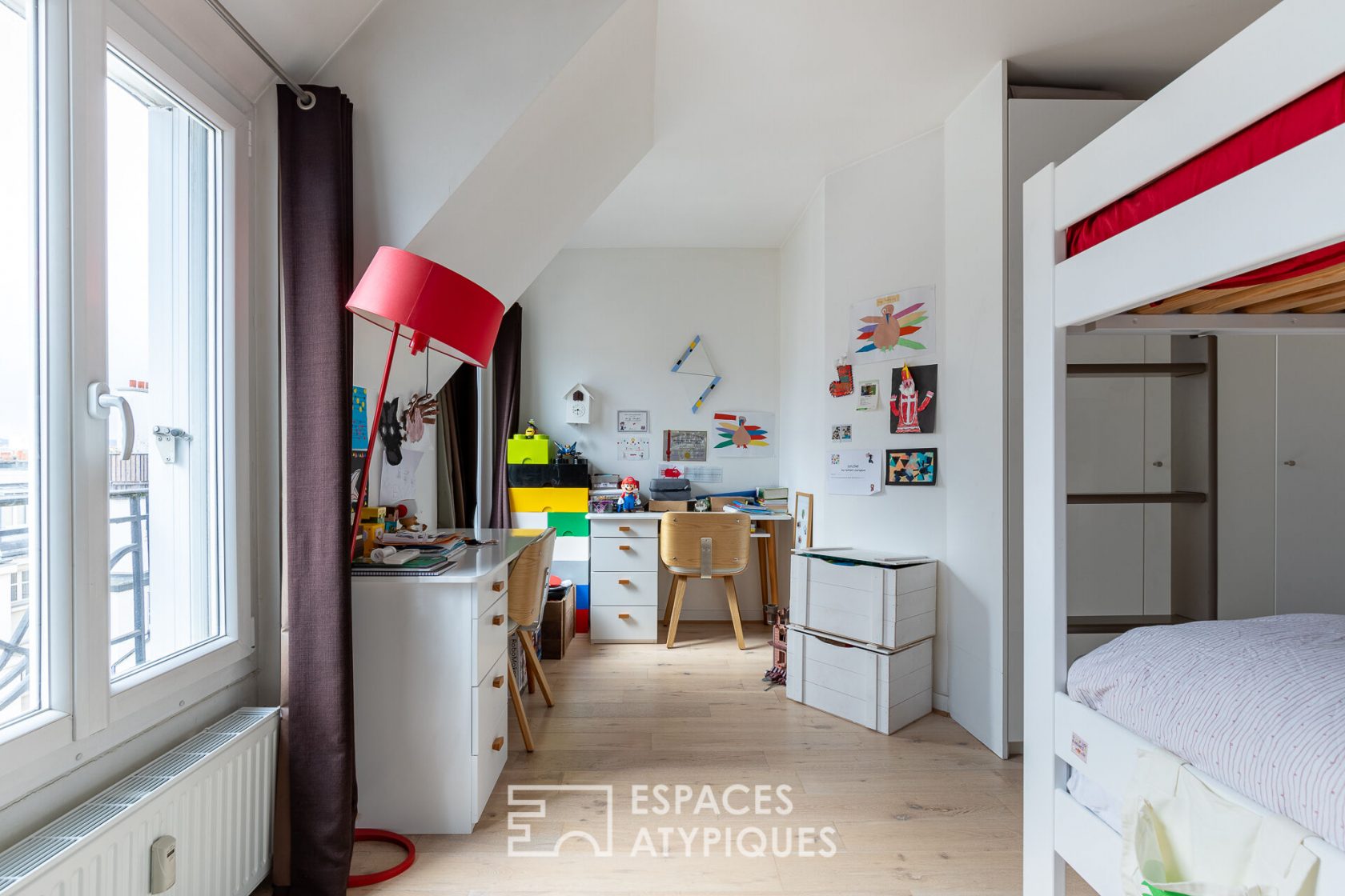 Auteuil Sud, on the 7th and last floor with elevator of a beautiful 1930 building, this 115 m2 (107 m2 Carrez) duplex apartment offers a 34 m2 roof-terrace without vis-à-vis.
