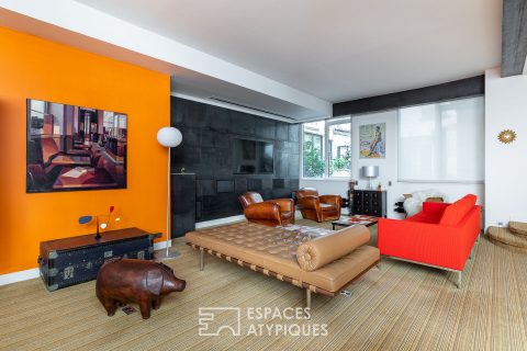 In a former printing house hides this 147 m2 (144 m2 Carrez) loft that looks like a peaceful house at the back of the courtyard.