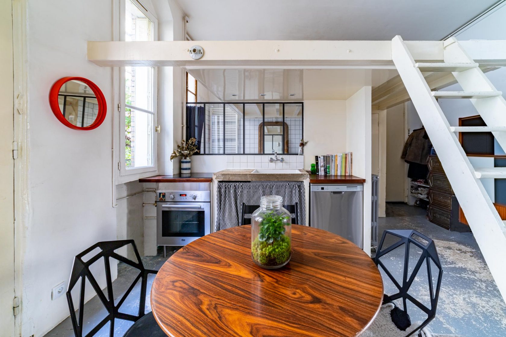 Located in a quiet, Rue Myrha between the 360 Music Factory and the Saint Bernard church, this former 50m2 grocery store (46m2 Carrez) has two mezzanines totaling 11m2.