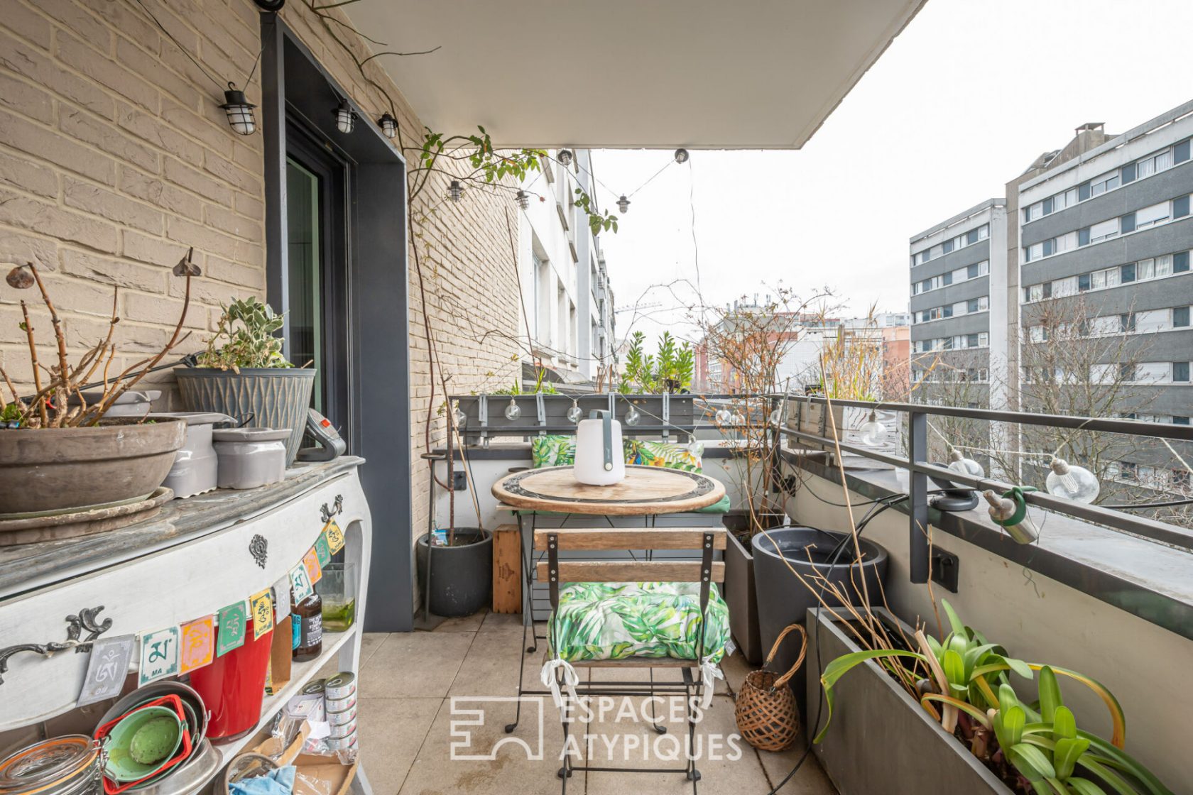 Between Parc de la Villette and the Buttes-Chaumont, this 42.86m2 Carrez apartment with a terrace of almost 10m2, is located on the 4th floor with elevator of a modern building and has a shared roof terrace.