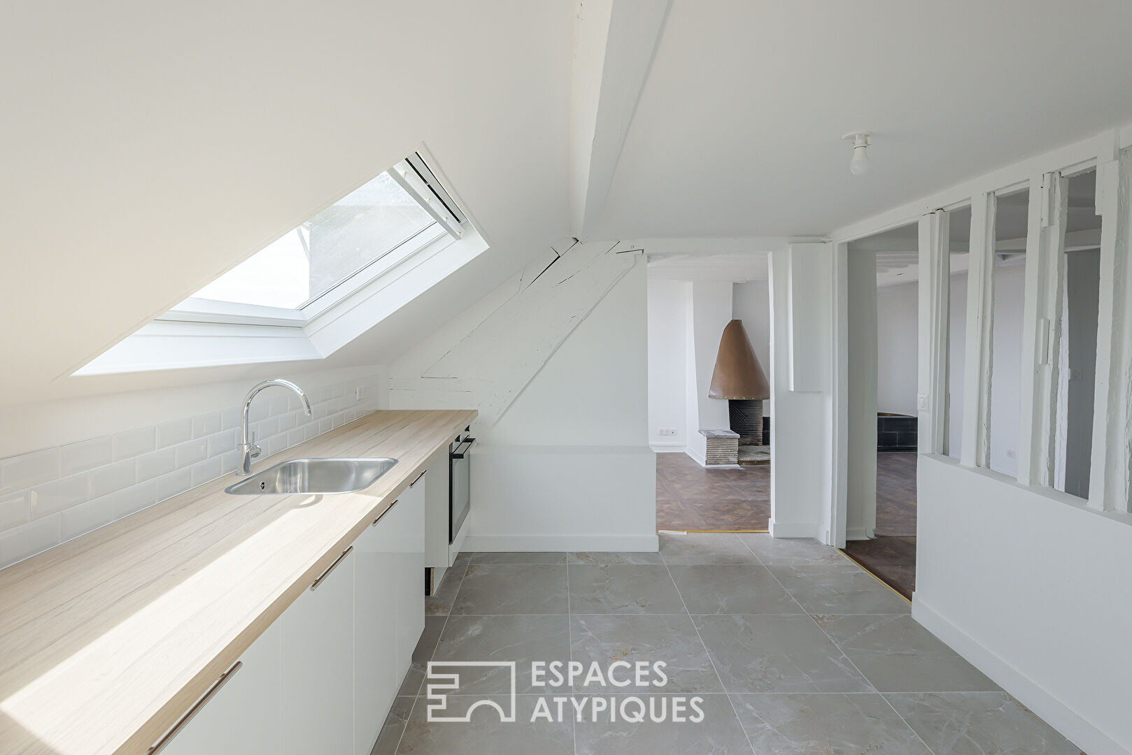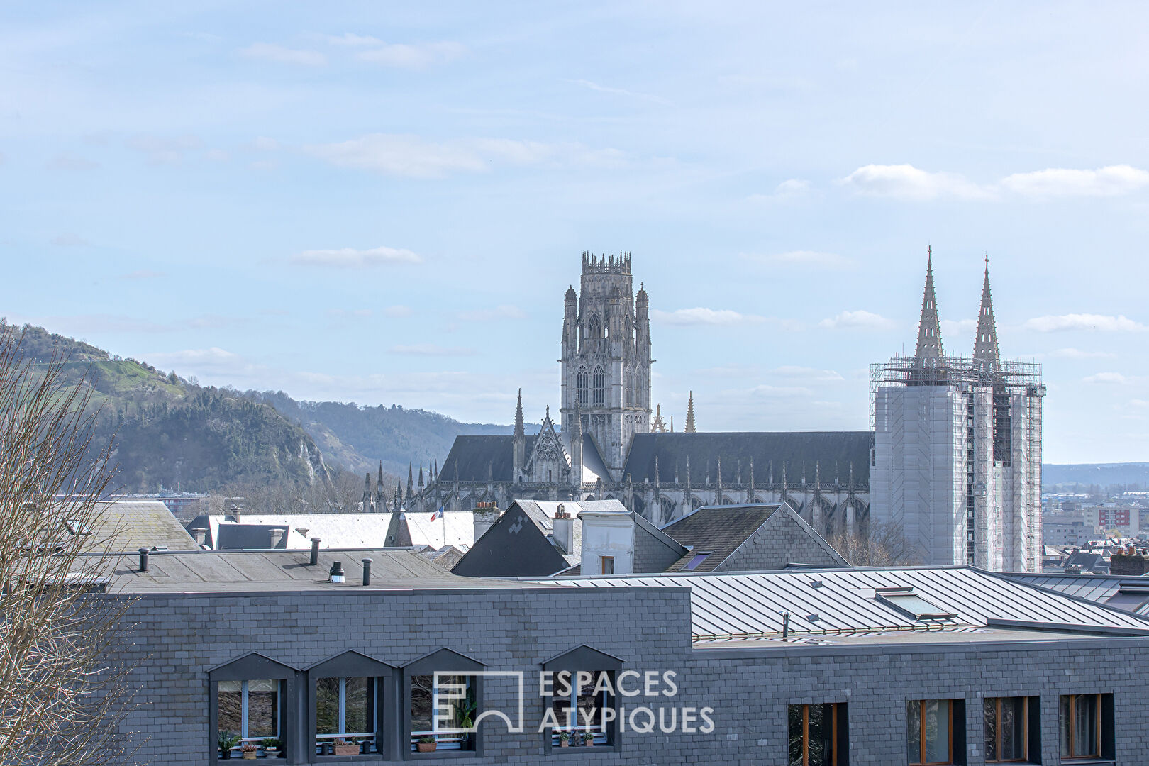 Upstairs, there is a huge bedroom with its own shower room and sink, which awaits its lucky occupant, enjoying splendid views of the jewels of Rouen.