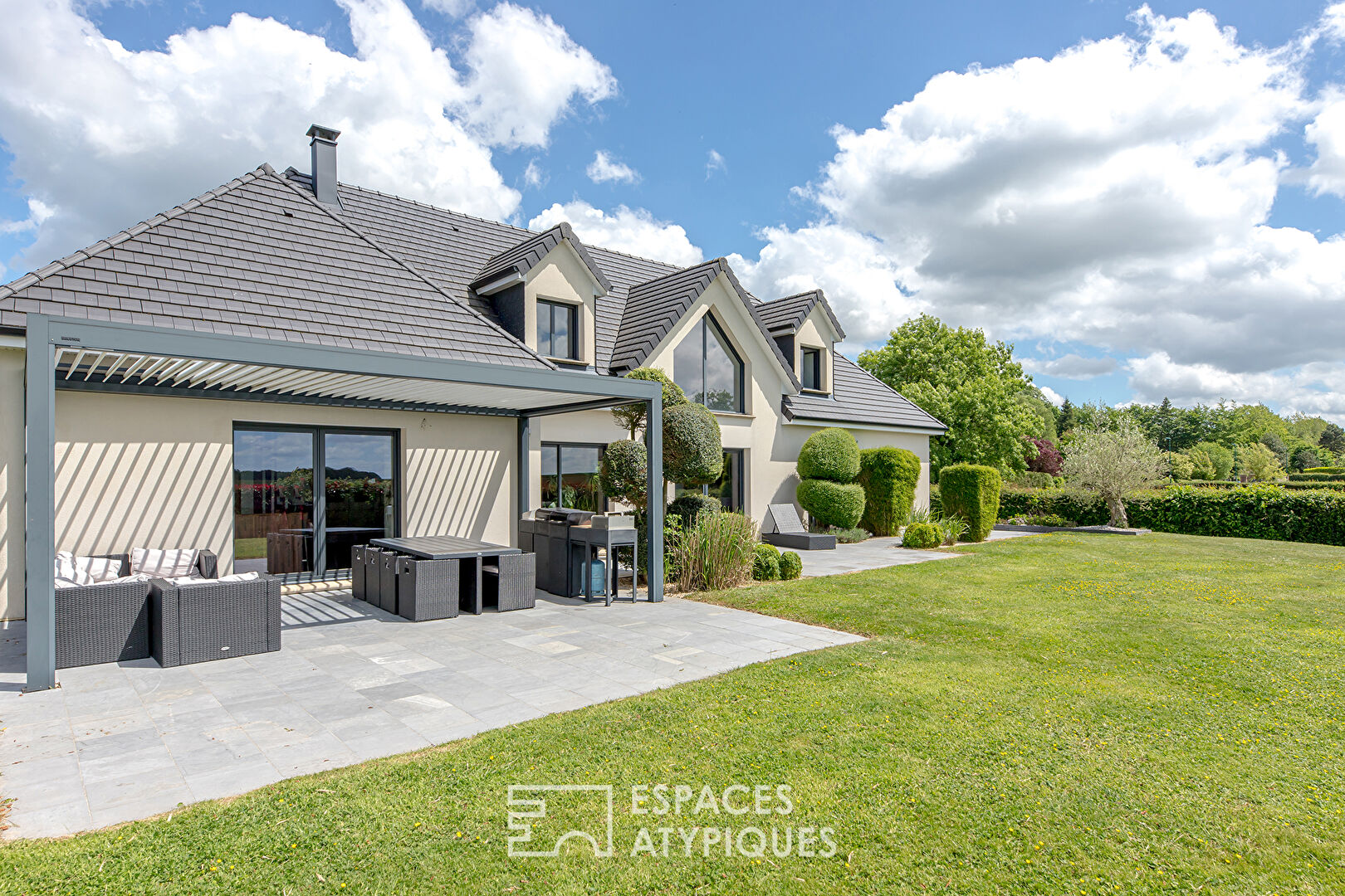 Located in a quiet area, in the hamlet of a small popular town to the east of Rouen, this beautiful contemporary 235sqm built in 2011, offers its inhabitants a radiant and soothing living environment.