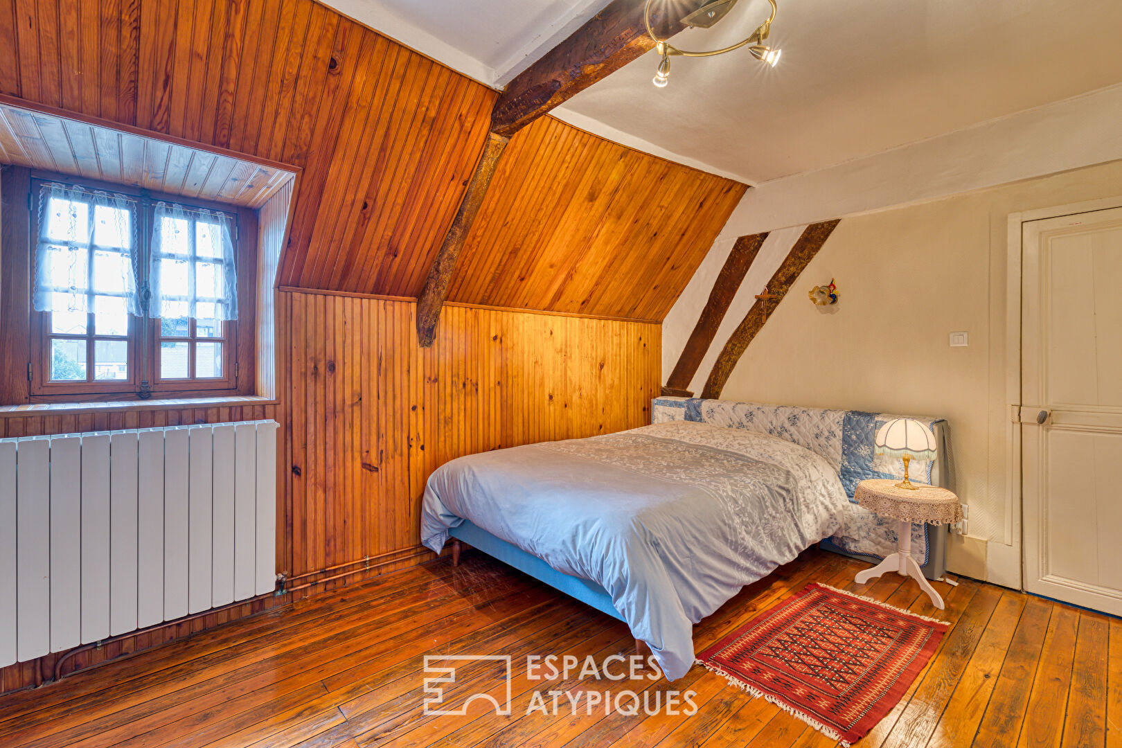 This authentic Norman brick and tile building benefits from an exceptional location giving it a lovely exposure. In addition to its generous volumes spread over 3 levels, it has an incredible garden crossed by a small stream, a pond and a large period outbuilding.