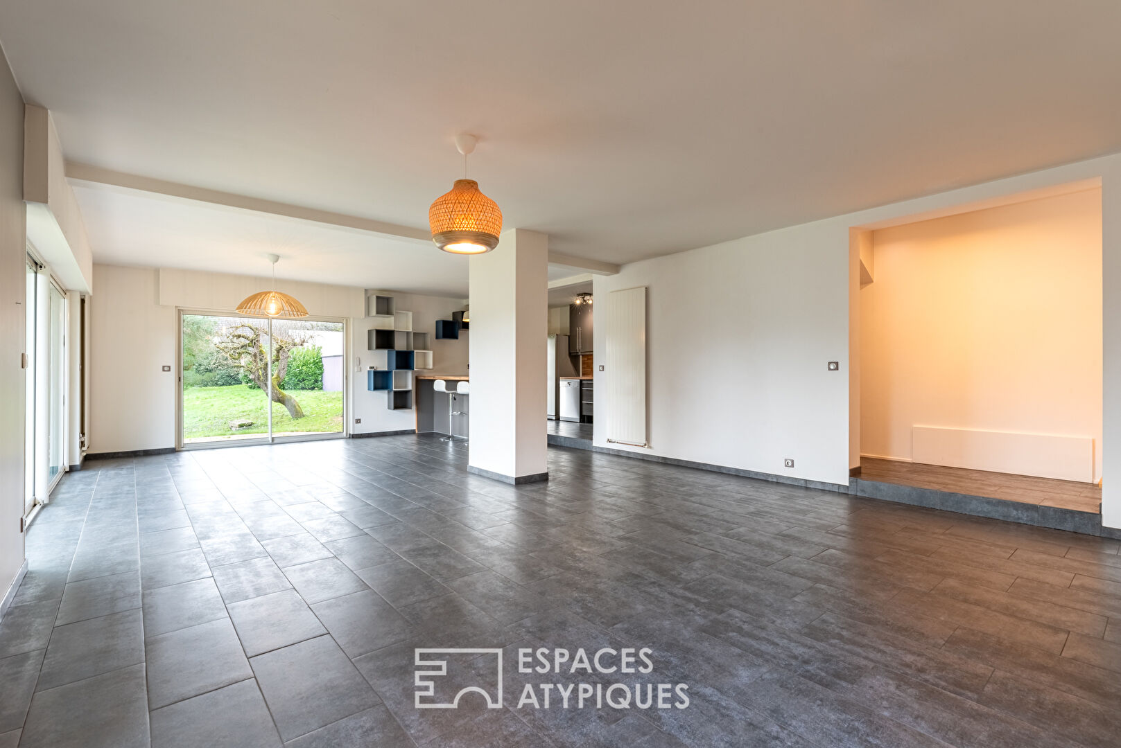 Located in the heart of a vast wooded garden, enhanced by fruit trees, this house of character elegantly combines the authenticity of an old building and the modernity of a recent extension. Each space has been designed to offer perfect harmony between comfort, functionality and aesthetics.