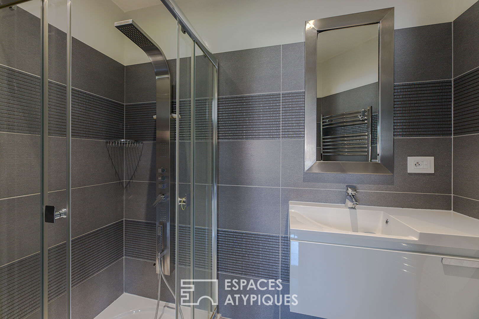 Quiet and nestled at the end of an alley, it offers a discreet and intimate life out of sight. The entrance gate sets the tone and foreshadows the degree of requirement and refinement that the owners of this beautiful building wanted to give to this comfortable property equipped with top-of-the-range services.