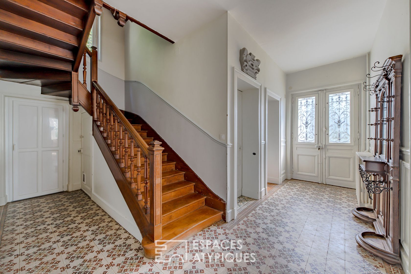 The spacious entrance with period cement tiles, sets the tone and instantly places it in its time.