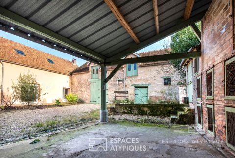 Located 25km from Fontainebleau, in the charming and dynamic village of Flagy, this farmhouse offers a living area of 230sqm and two beautiful outbuildings to renovate. Completely enclosed by a wall, in a quiet area and out of sight, this property is built on a plot of 585sqm. Completely renovated by the current owners, this house is ideal for a family life, a guest house project or for a liberal profession. The main entrance opens into a room converted into an office having preserved its marble fireplace. A corridor leads to a spacious living room of almost 90sqm having retained the charm of the old with its stone wall, its beams and its fireplace with insert. This space bathed in light by many opening windows offers a beautiful fitted kitchen, a dining area, a lounge area and access to the south-facing terrace and courtyard. A bedroom with its bathroom, a summer kitchen and a laundry area complete this level. A wooden staircase leads upstairs, on which a landing room can accommodate an office or a play area for children. On one side, there is a large bedroom and an attic space which remains to be imagined as a dressing room and / or bathroom. On the other side are two beautiful bedrooms which share a bathroom with bath and shower. The courtyard reveals a porch which can shelter a vehicle and which offers a second independent entrance. The preserved hutches currently allow the storage of wood. Two outbuildings totaling around 160m2 used in storage space can be rehabilitated. A real wine cellar of around 40m2 and two wells complete this property. This property will seduce by its location in the countryside close to amenities, by its renovation and its remaining potential to be exploited. Nursery school in the town 25km from Fontainebleau / 10km from Montereau with train station and access to Lyon train station in 57 minutes