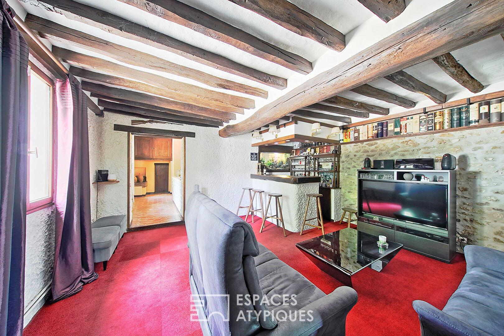 A few km from La Ferté sous Jouarre, this beautiful restored Briarde house from 1700 with 184m2 of living space is located in the heart of a small village in the protected and charming valley of Petit Morin. It is surrounded by a beautiful landscaped garden of 1179m2 at the end of which a small river flows. The entrance opens directly onto the living room, decorated with a fireplace and a bread oven. In this room, the tone is set from the start: exposed beams and stones, floor tiles, old elements elegantly integrated to recall the charm of the old. A small back door leads to a dressing room and laundry area. Next is a room that serves as a workshop and technical room for the boiler. After entering, you enter an intimate lounge with a real warm bar. We then enter the pinnacle of the house with a dining room with a cathedral ceiling, all in stone and exposed beams, equipped with a beautiful solid oak staircase which leads to a mezzanine library which overlooks the room. A door in the back leads to a hallway leading to a bathroom, a toilet, a storage room and the fitted and equipped kitchen. The last room on this level is a vestibule from which a beautiful closed staircase leads to the first floor which reveals four beautiful bedrooms and an office. On one side of the hallway, a door leads to the mezzanine above the dining room. At the other end, a door opens onto an old convertible barn with more than seven meters at the ridge. A staircase in the fourth bedroom in the attic to be fitted out according to your wishes. The discovery of the exterior begins with a terrace with a barbecue. The walled garden is made up of many species of trees and plants: mock orange, cherry, apple, ash, oak, bamboo, purple maple, kiwi, maritime pine, hornbeam, birches, a palm tree and a banana tree bordering the pond. fish with its fountain, fed by a spring. At the very end, the lovely little river acts as a natural border and brings precious freshness to the garden. At the front of the house, a workshop-carport and a closed garage for parking two vehicles, a vegetable patch and an uncovered parking space complete the exteriors. This property will seduce with its charm, its beautiful materials and its outdoor spaces close to the amenities of the city. ENERGY CLASS: F/ CLIMATE CLASS: F Amount of annual energy expenditure for standard use established on the basis of energy prices indexed on January 1, 2021 (subscription included) between EUR3806 and EUR5150 per year.